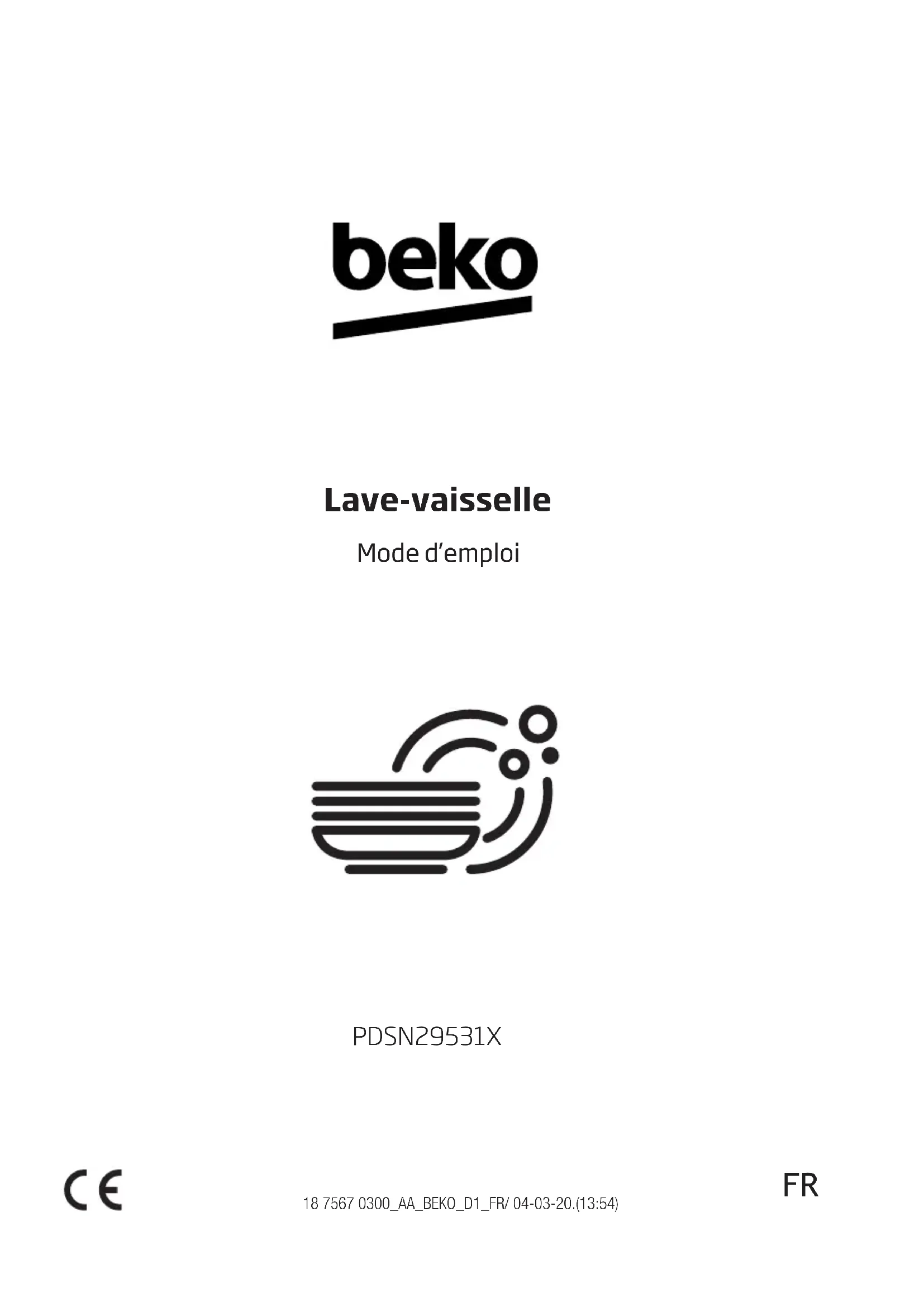 PDSN29531X - Lave-vaisselle BEKO - Notice d'utilisation et mode d'emploi gratuit