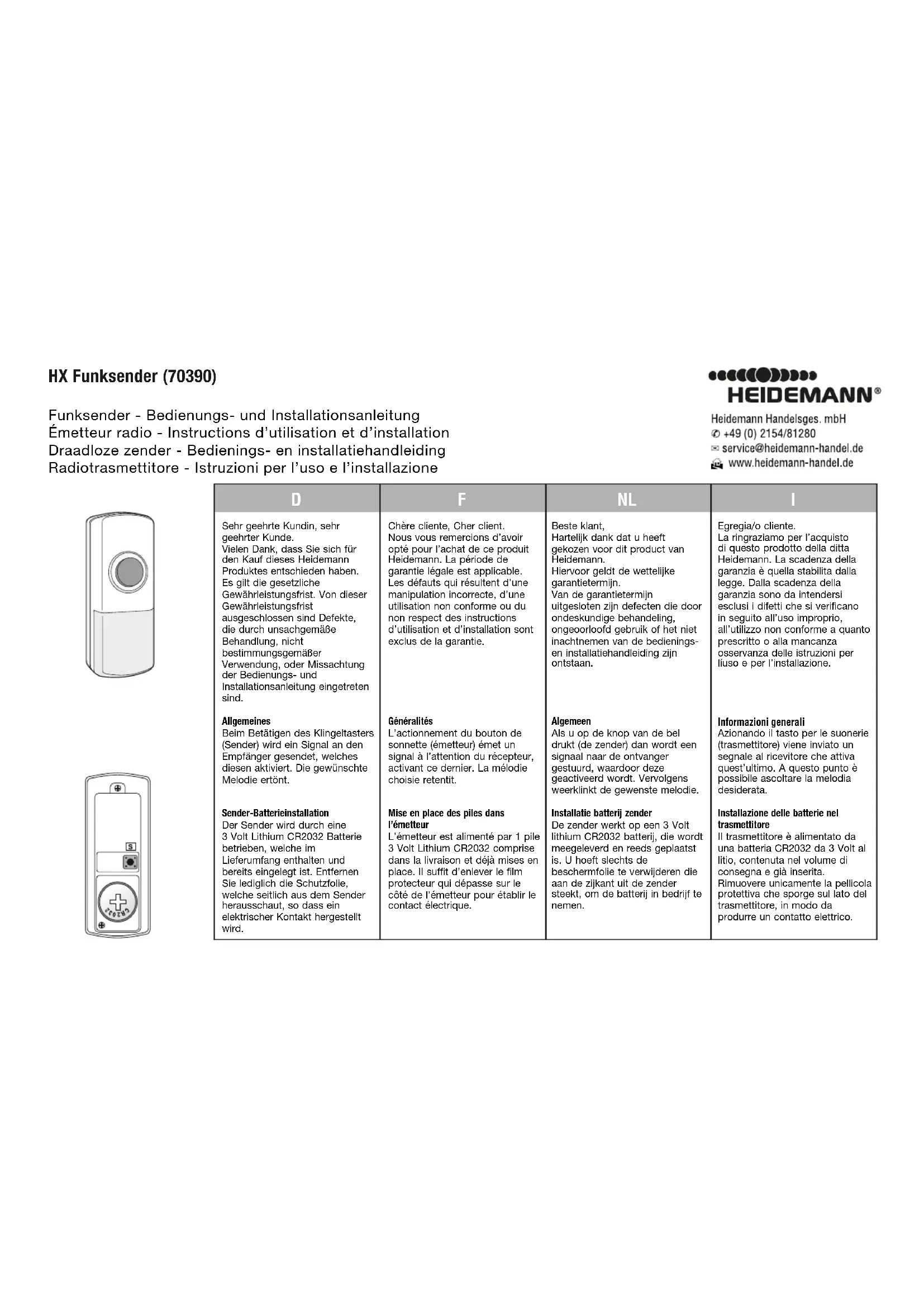 Retrouvez gratuitement la notice de l'appareil HX Funksender 70390 Heidemann au format PDF.