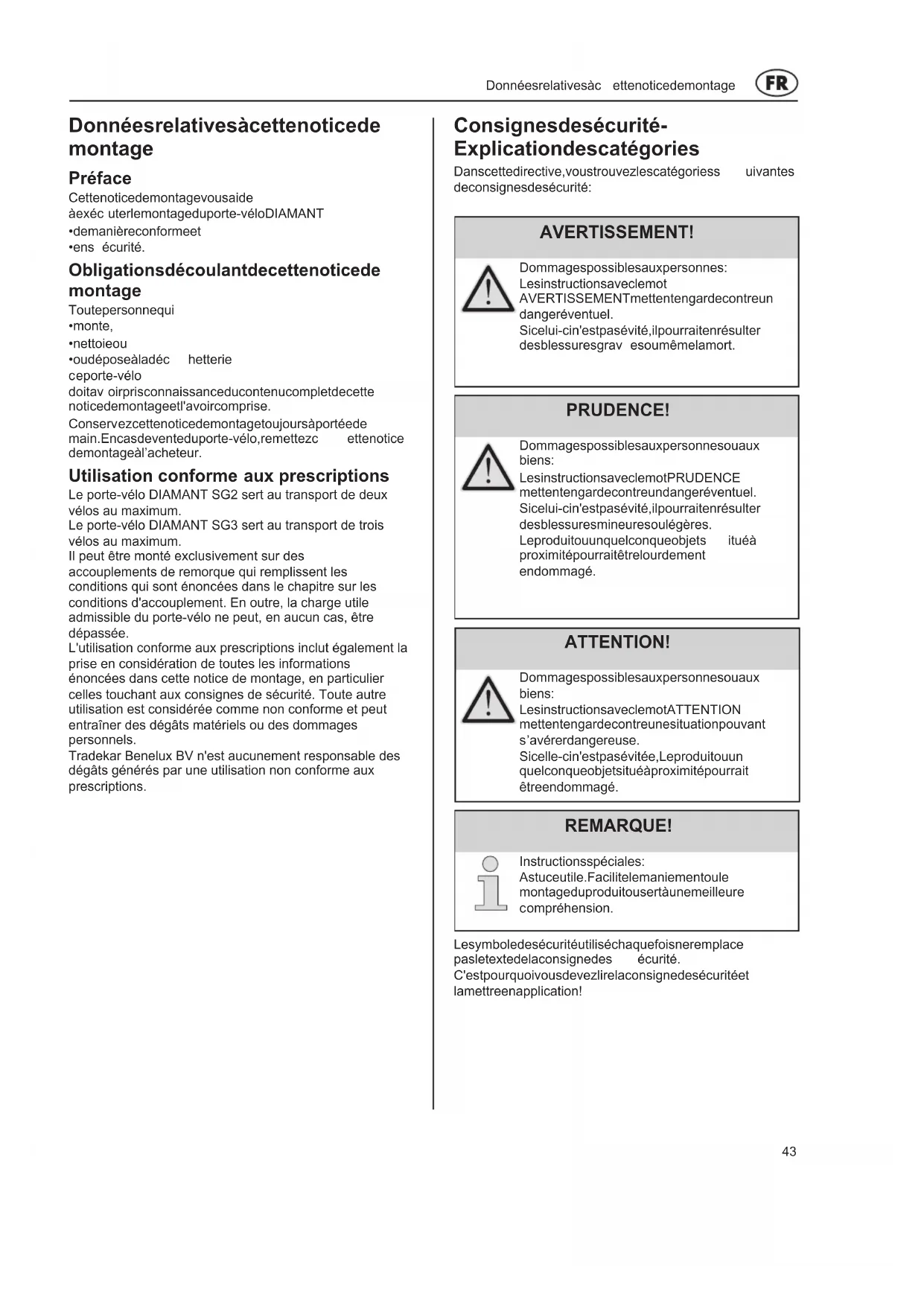 Conservez cette notice de montage toujours à portée de main. En cas d'événement du porte-velo, remettez cette notice de montage à l'acheteur.