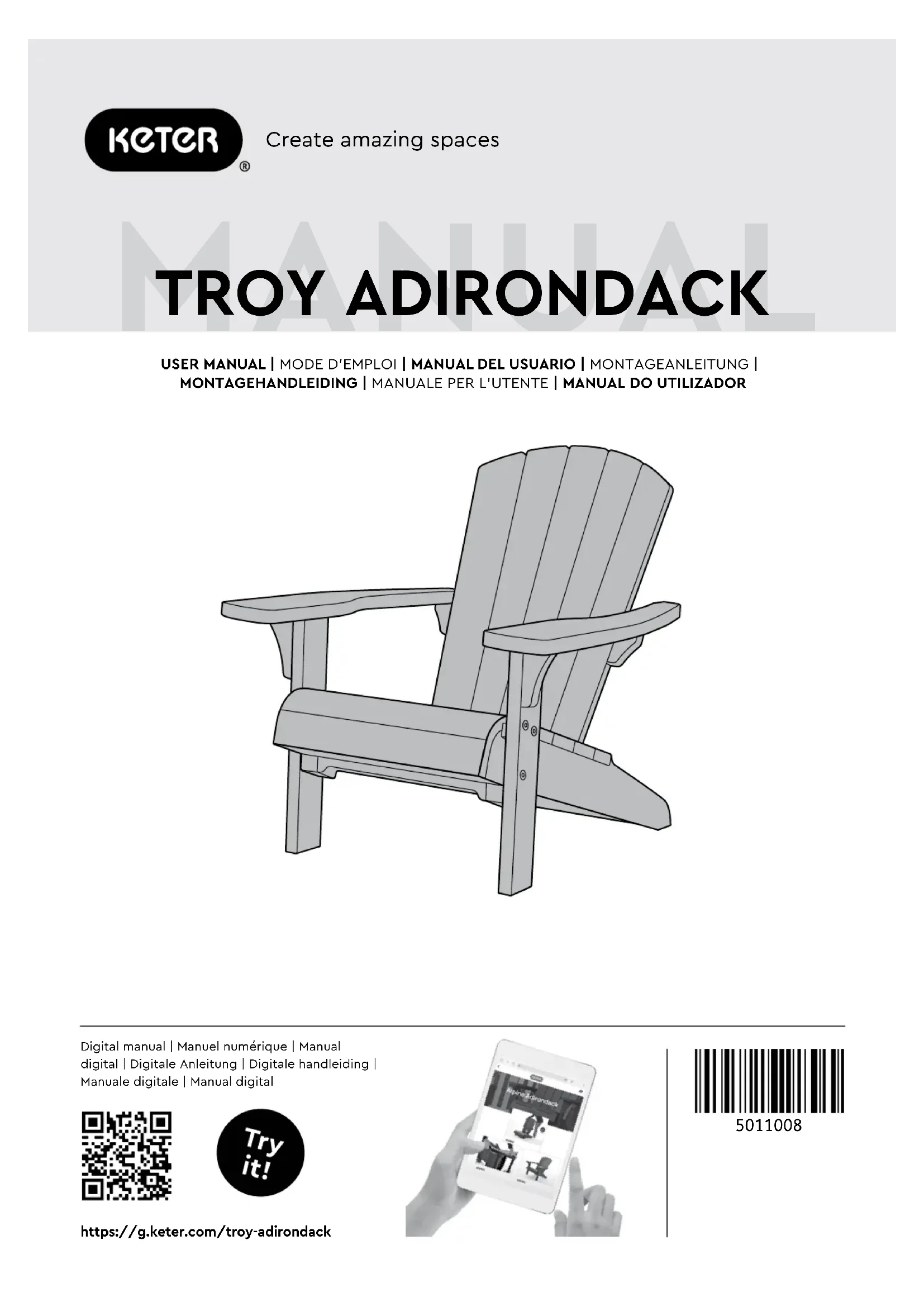 Retrouvez gratuitement la notice de l'appareil Troy Adirondack KETER au format PDF.