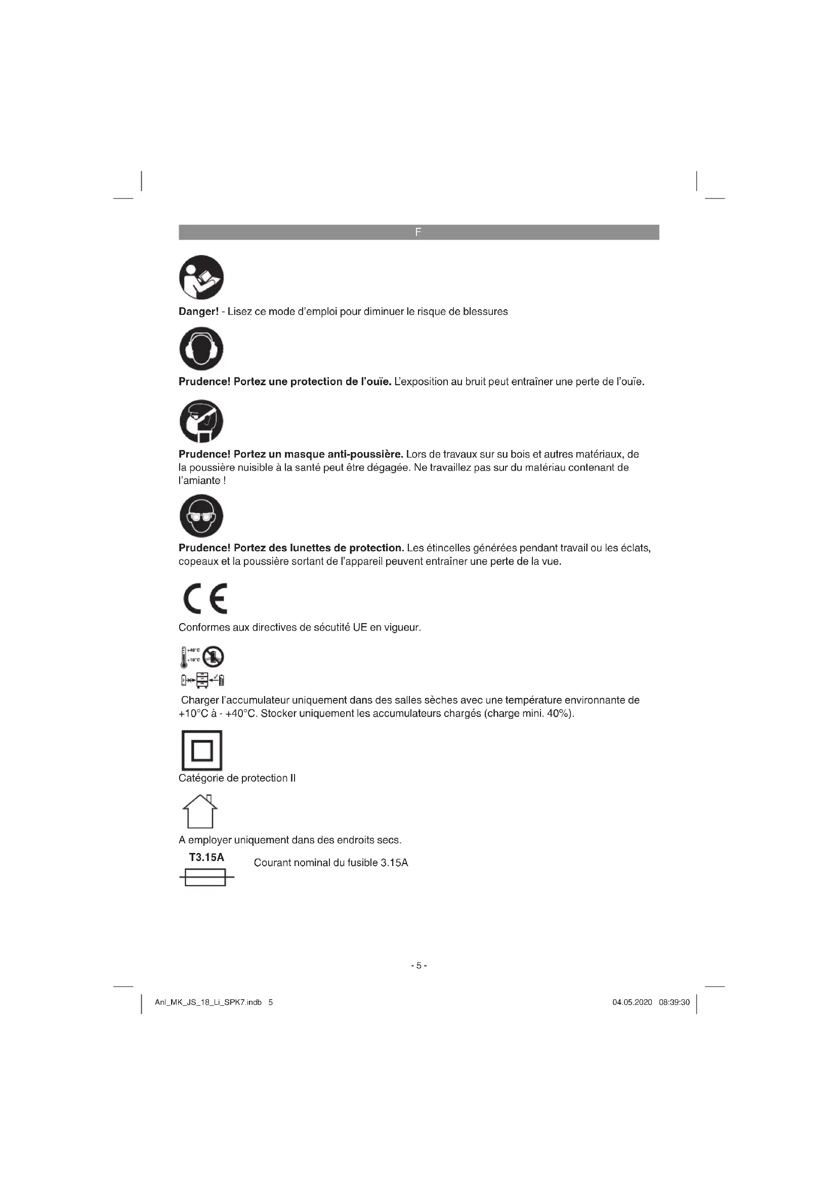 Prudence! Portez un masque anti-poussière. Lors de travaux sur su bois et autres matériaux, de la poussière nuisible à la santé peut être dégagée. Ne travaillez pas sur du matériau contenant de l'amiante !