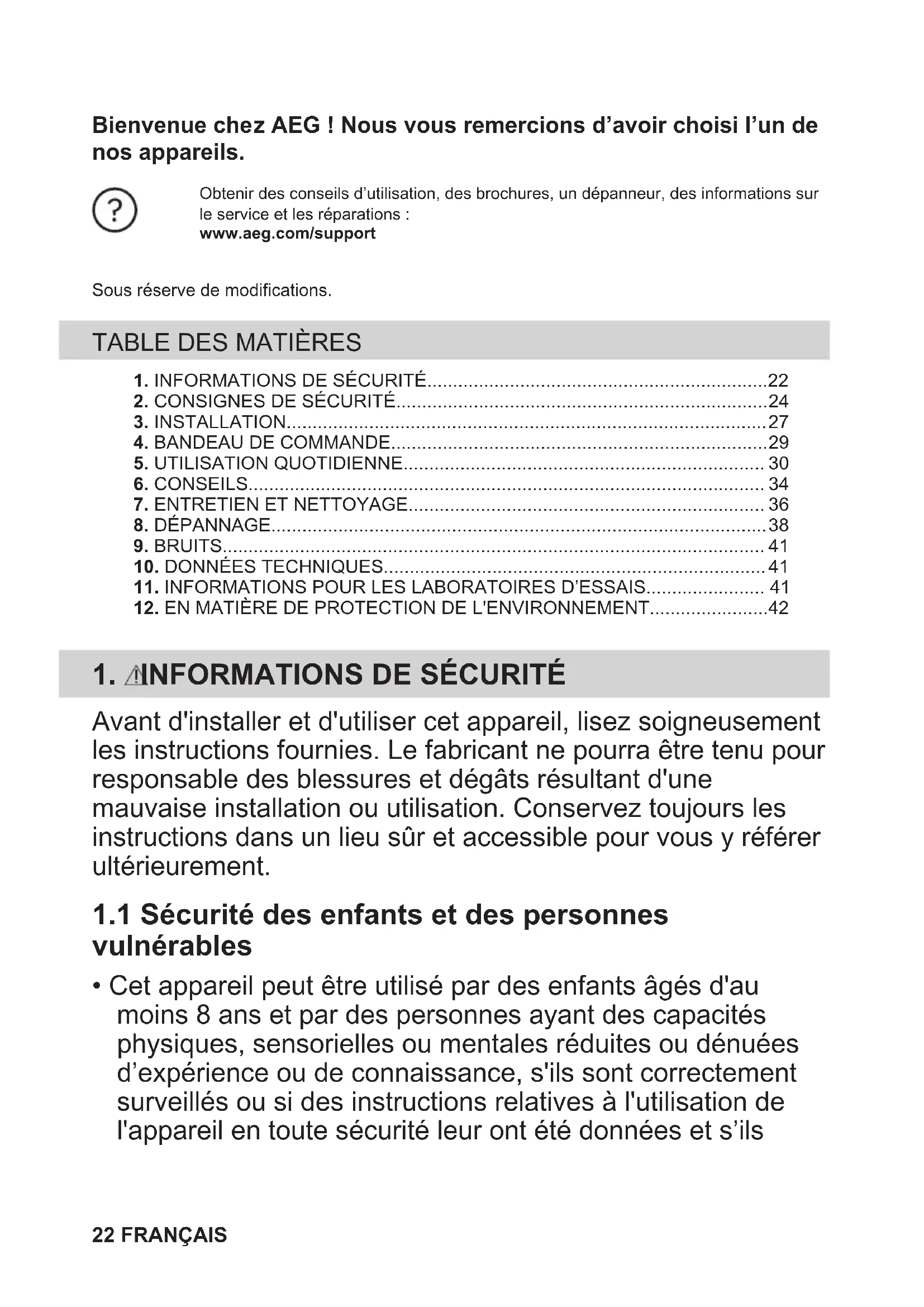 1.1 Sécurité des enfants et des personnes