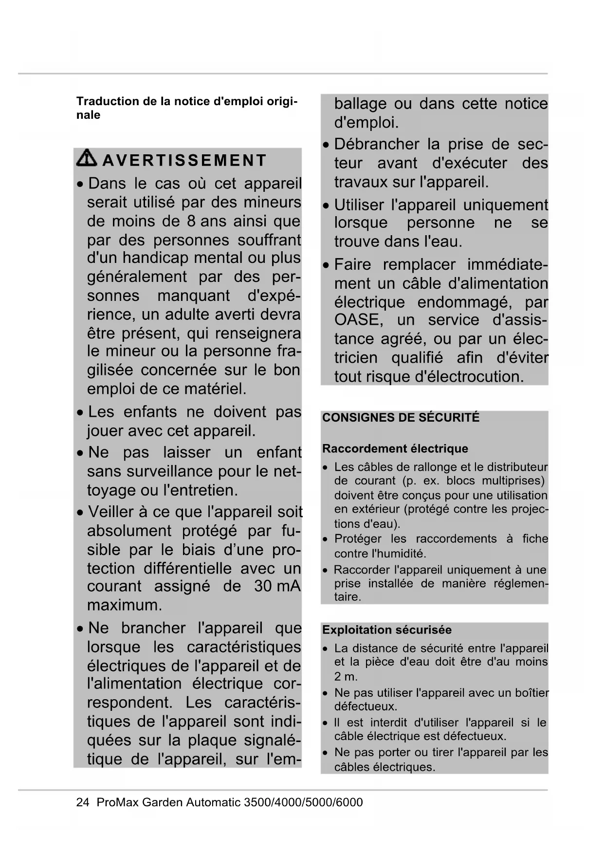Retrouvez gratuitement la notice de l'appareil ProMax Garden Automatic 60005 OASE au format PDF.