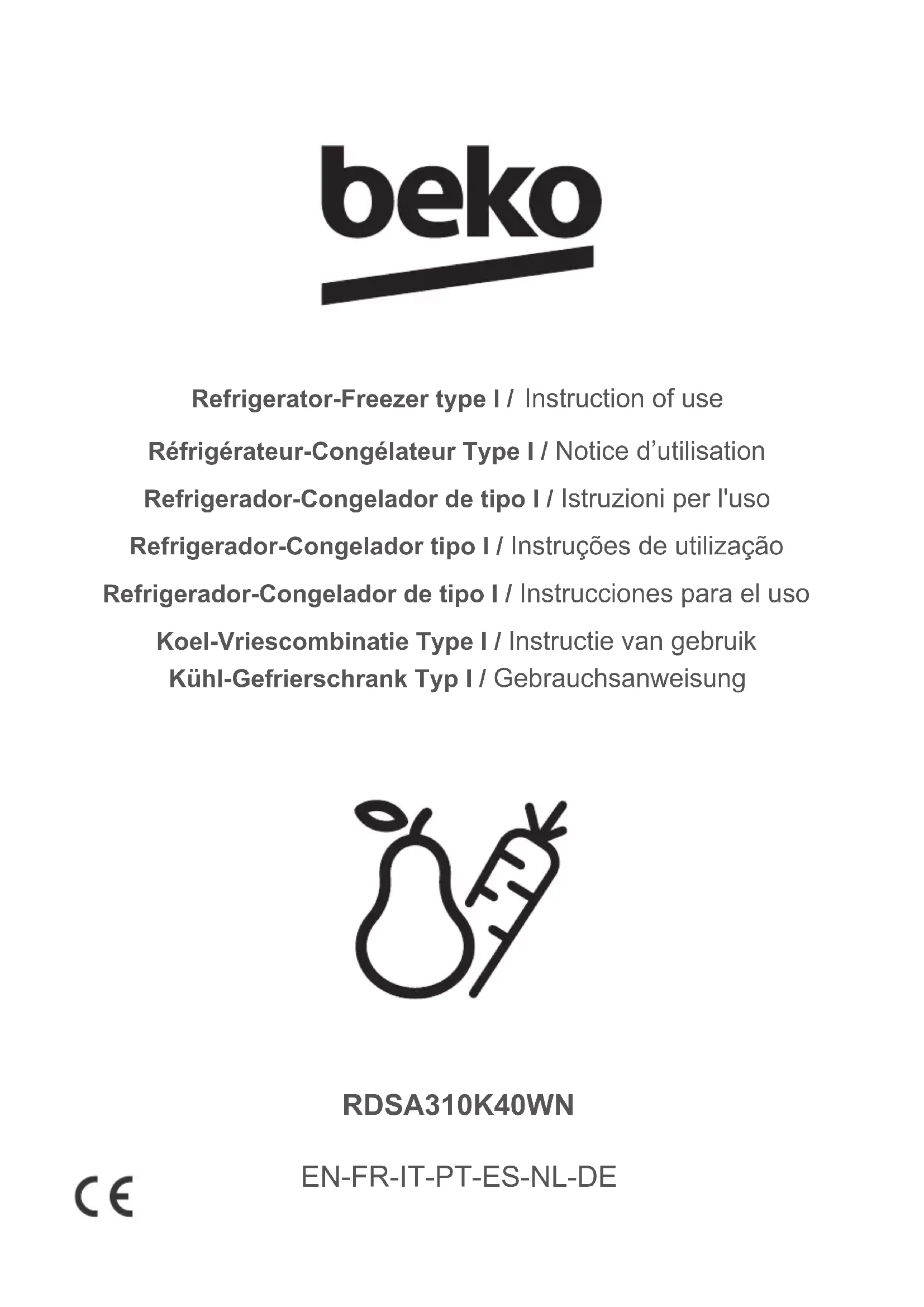 RDSA310K40WN - Réfrigérateur BEKO - Notice d'utilisation et mode d'emploi gratuit