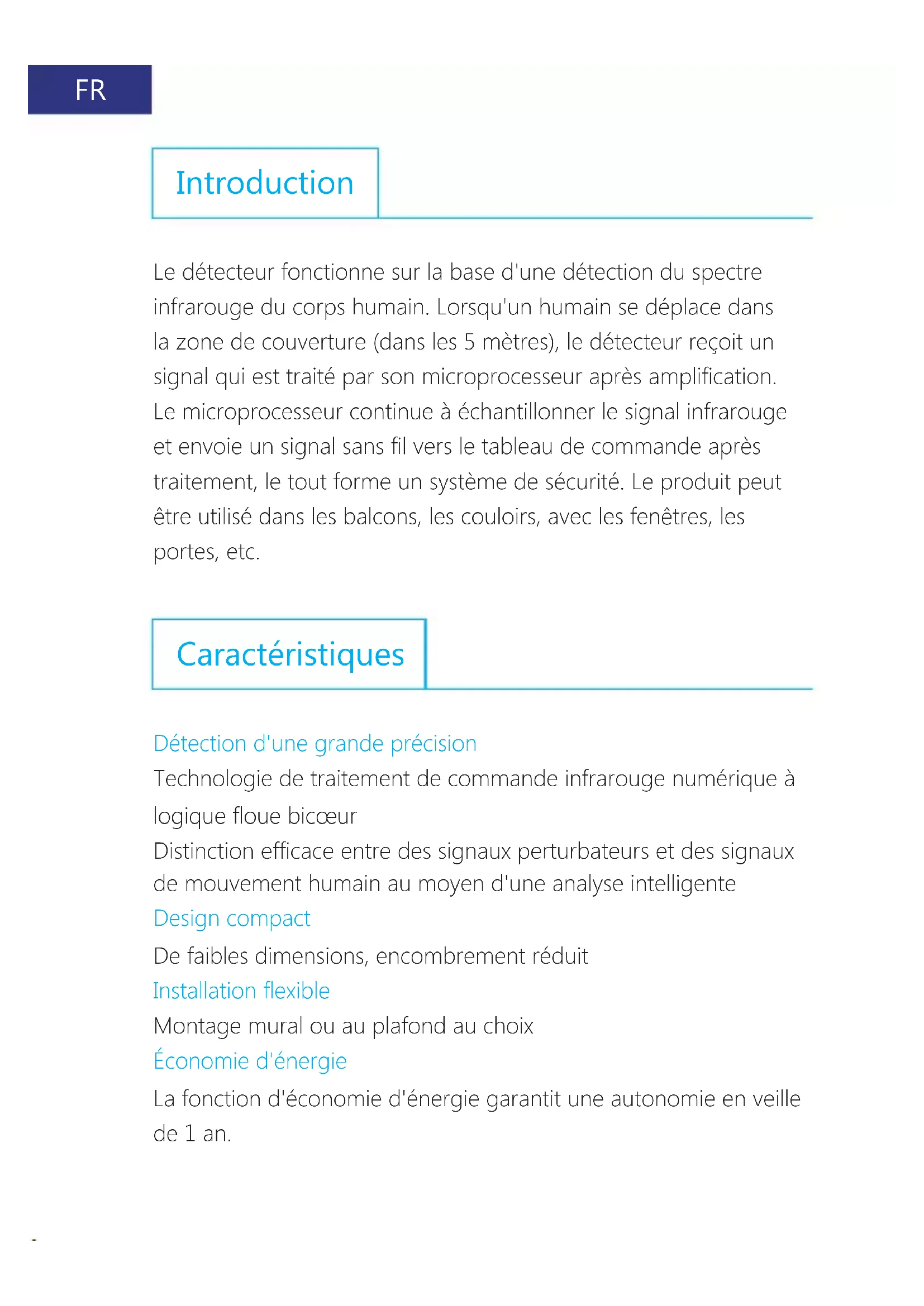 | Type de produit | Détecteur de mouvements |