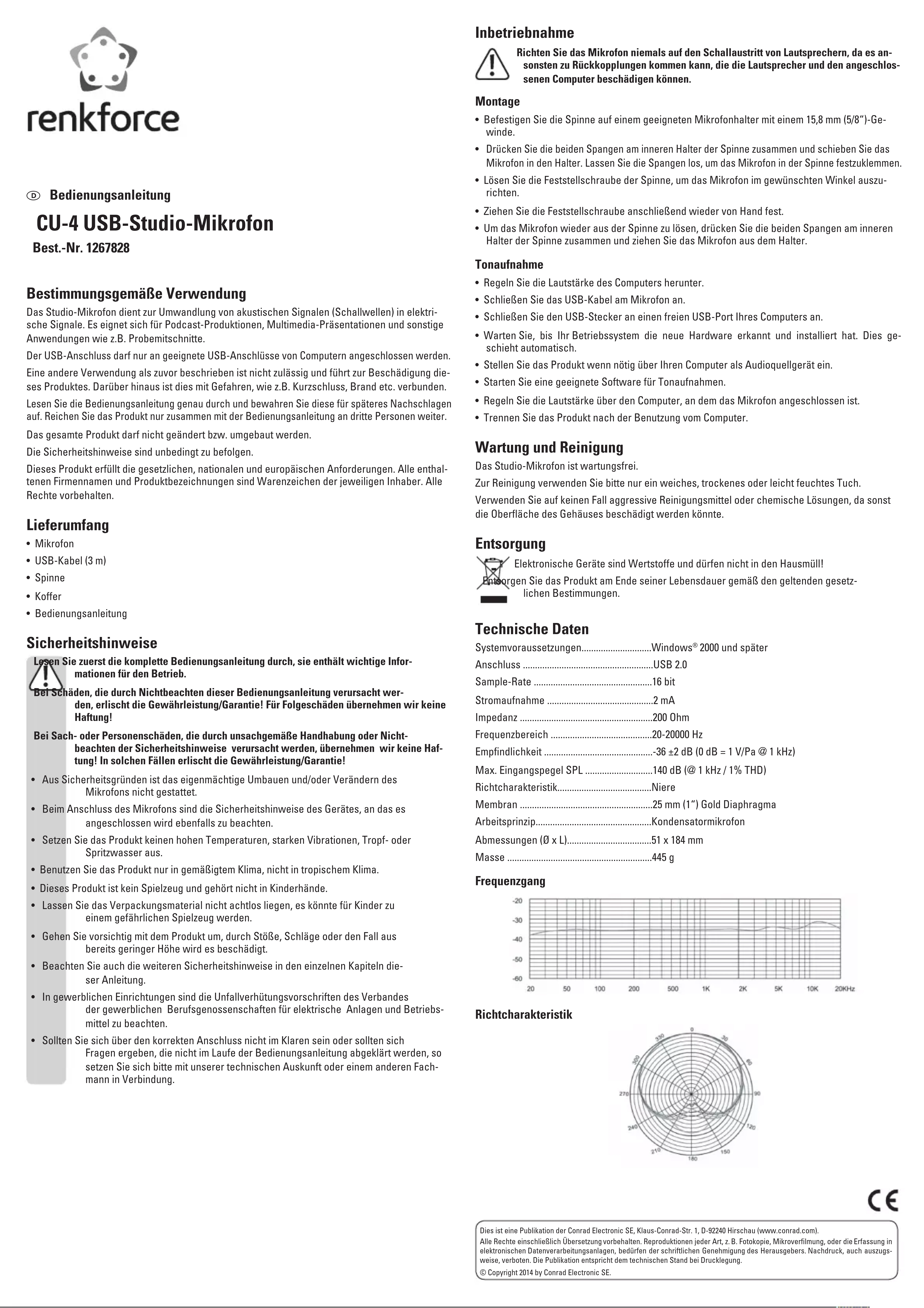 CU4 - Microphone Renkforce - Notice d'utilisation et mode d'emploi gratuit