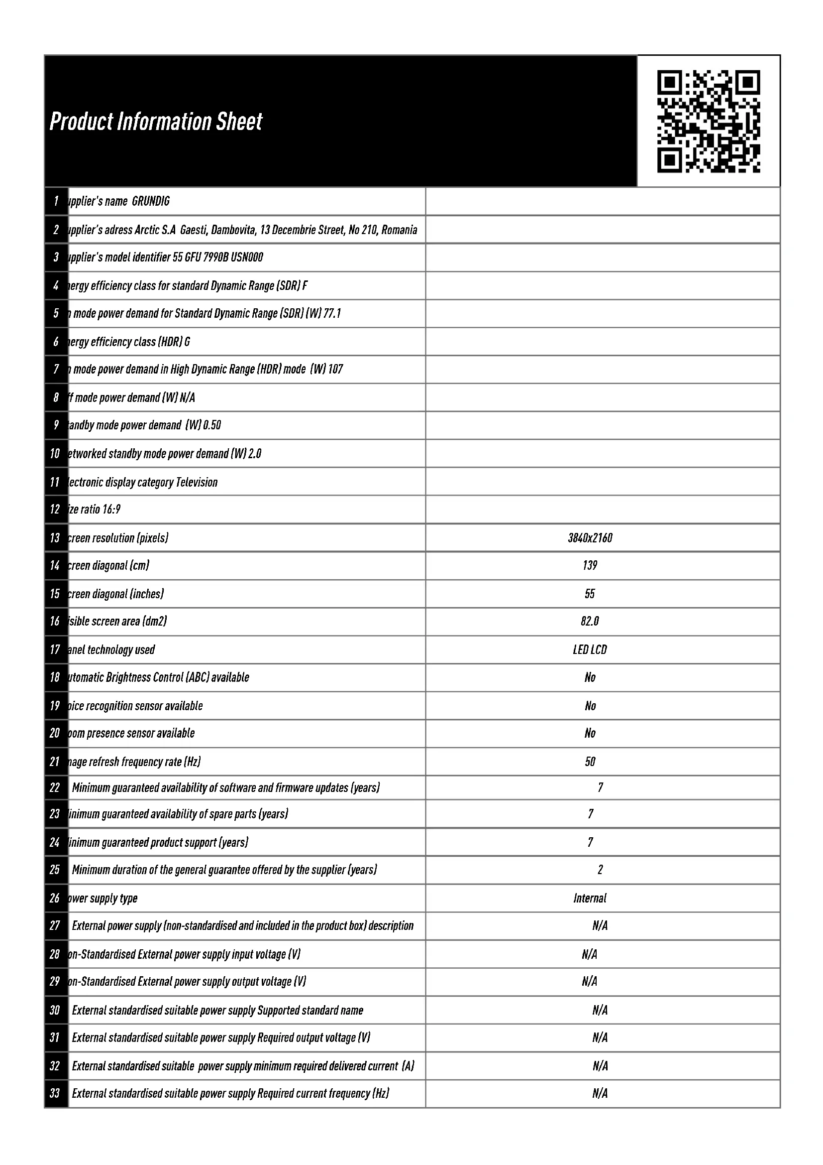 FOIRE AUX QUESTIONS - 55 GFU 7990B GRUNDIG