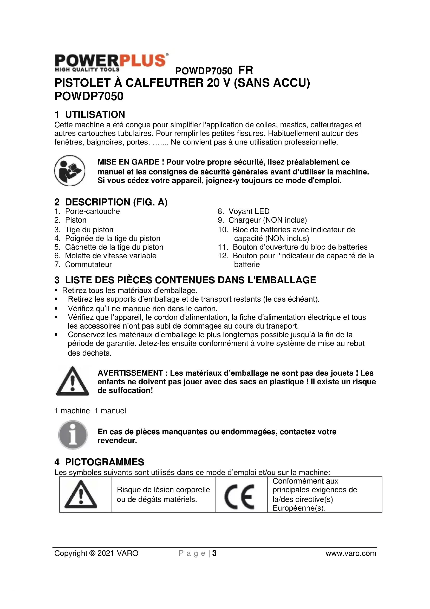 3 LISTES DES PIECES CONTENUES DANS L'EMBALLAGE 3
