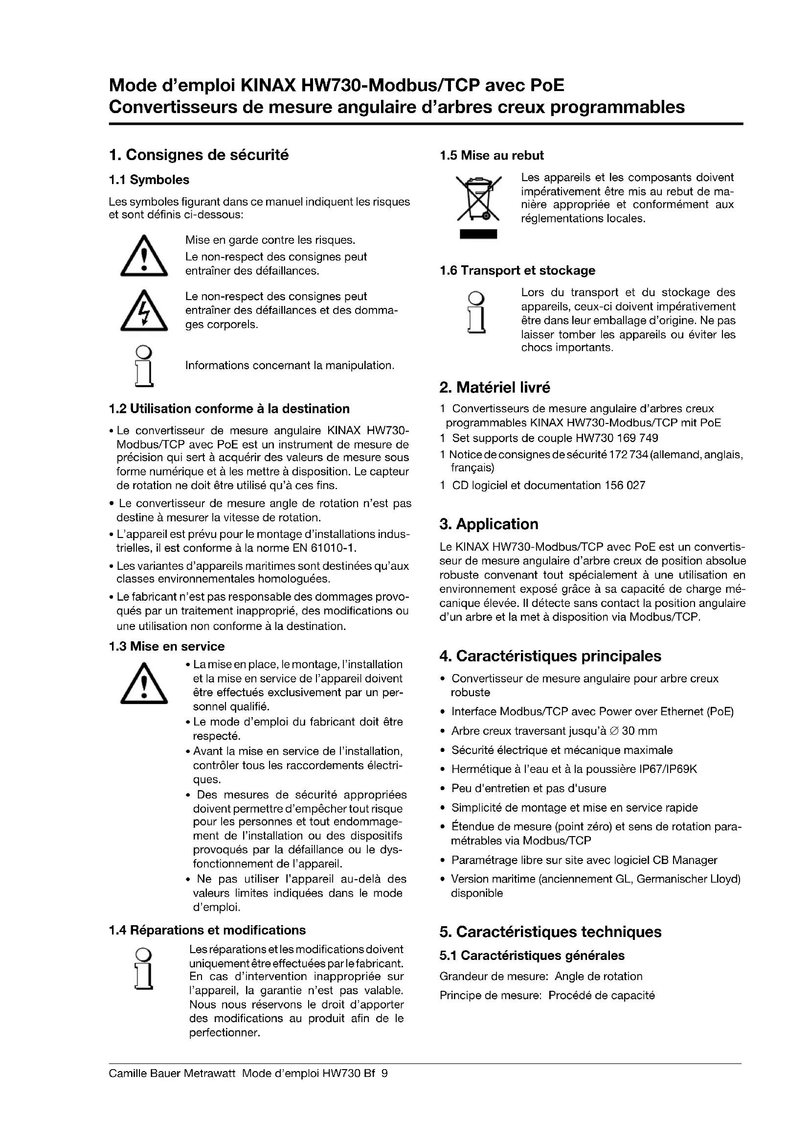 KINAX HW730ModbusTCP - équipements de mesure Camille Bauer - Notice d'utilisation et mode d'emploi gratuit