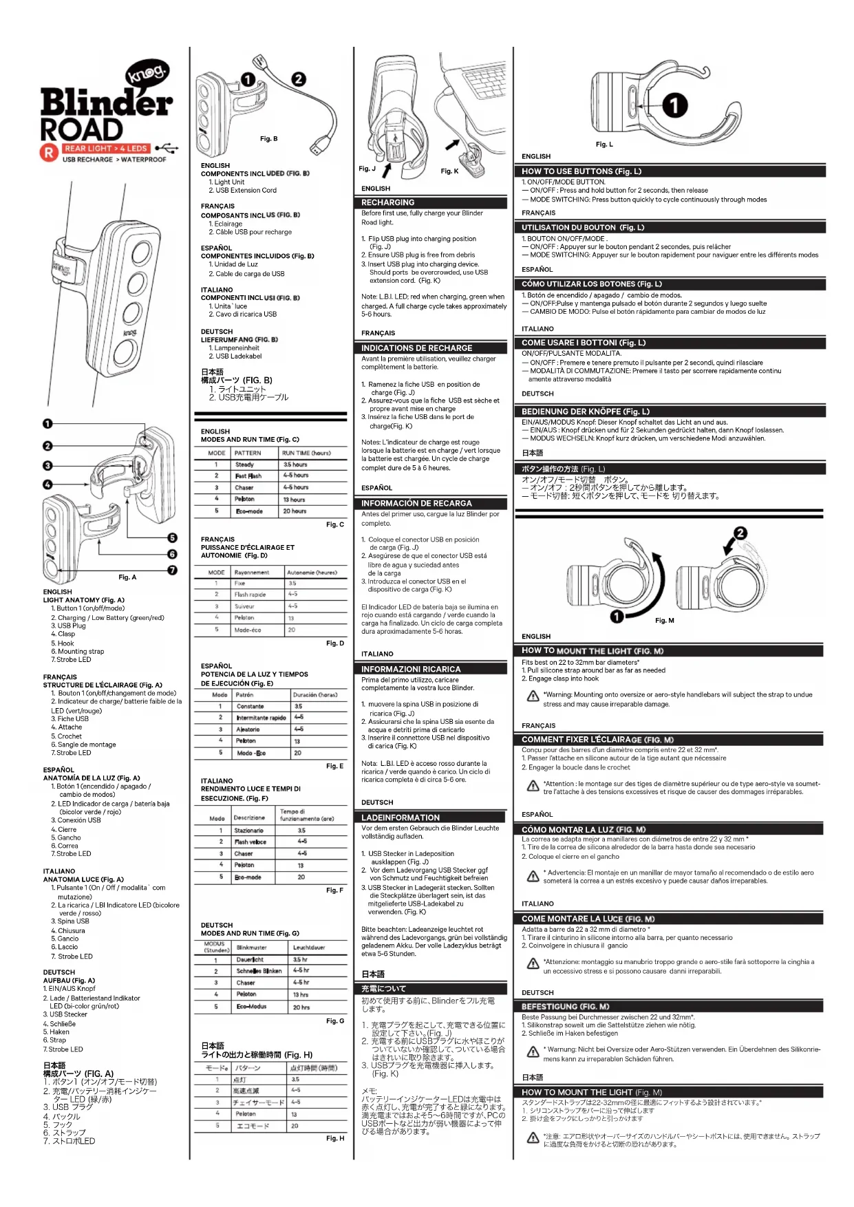 Retrouvez gratuitement la notice de l'appareil Blinder Road Knog au format PDF.