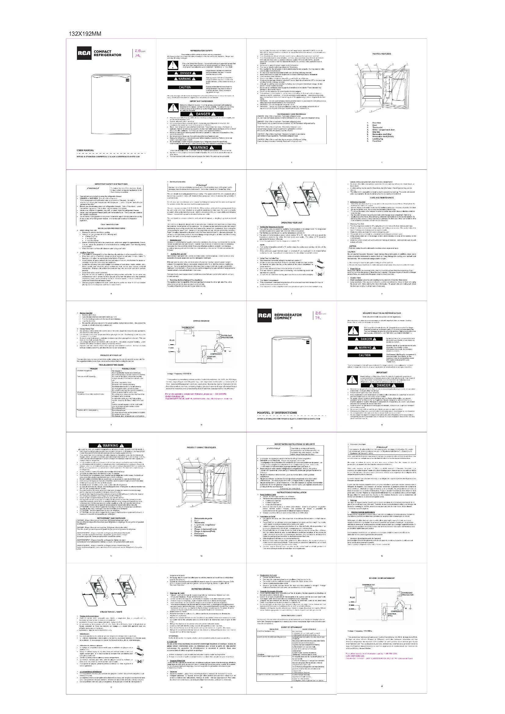 RFR283 - Réfrigérateur RCA - Notice d'utilisation et mode d'emploi gratuit