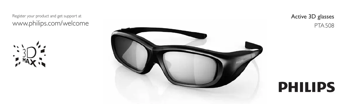 Français Lunettes Active 3D PTA508 Contenu de l’emballage - Lunettes Active 3D Max - Pochette en microfibre - Manuel et garantie Voir les illustrations au début du manuel. 1 - A, Bouton marche/arrêt 2 - Player 1/2, sélection du joueur 1 ou du joueur 2 3 - Objectif du récepteur 4 - Compartiment à pile