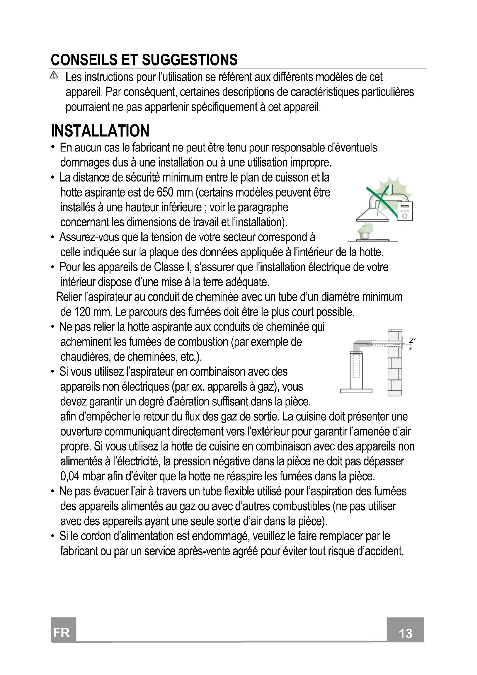 • Ne jamais laisser un feu vif allumé sous la hotte lorsque celle-ci est en fonction.