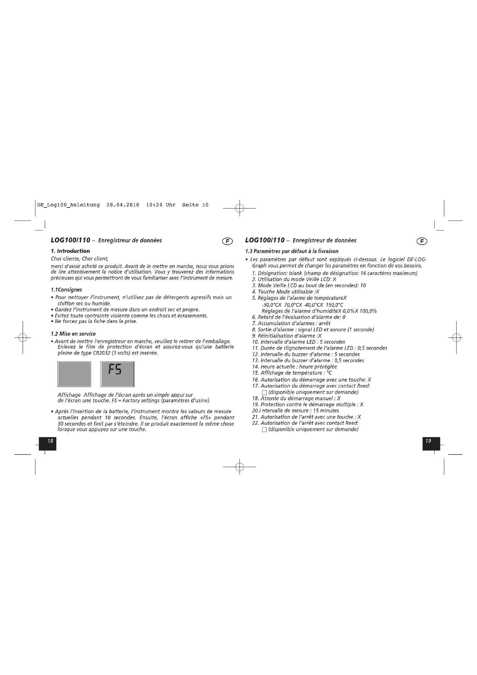 MODE D'EMPLOI LOG110 Dostmann Electronic