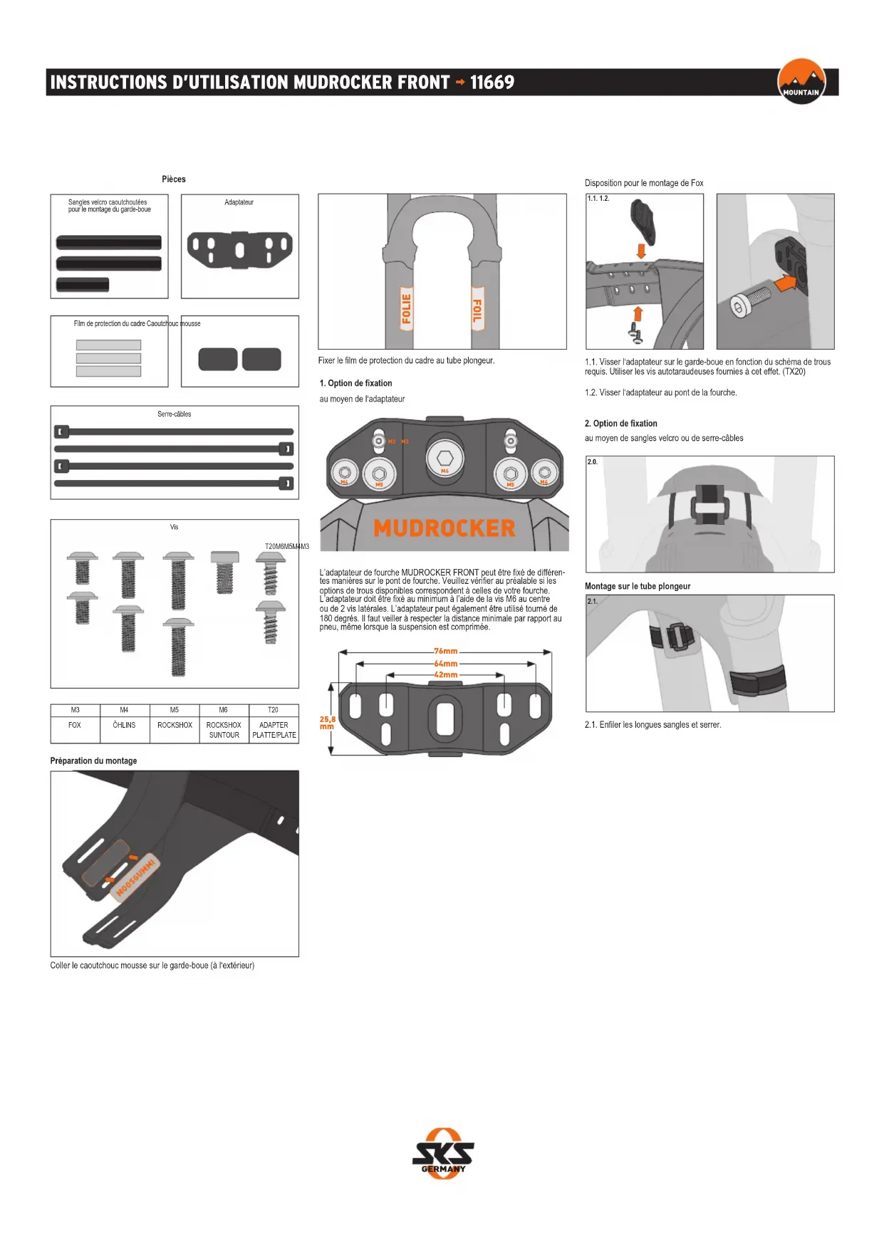 Mudrocker SET - Accessoire pour vélo SKS - Notice d'utilisation et mode d'emploi gratuit