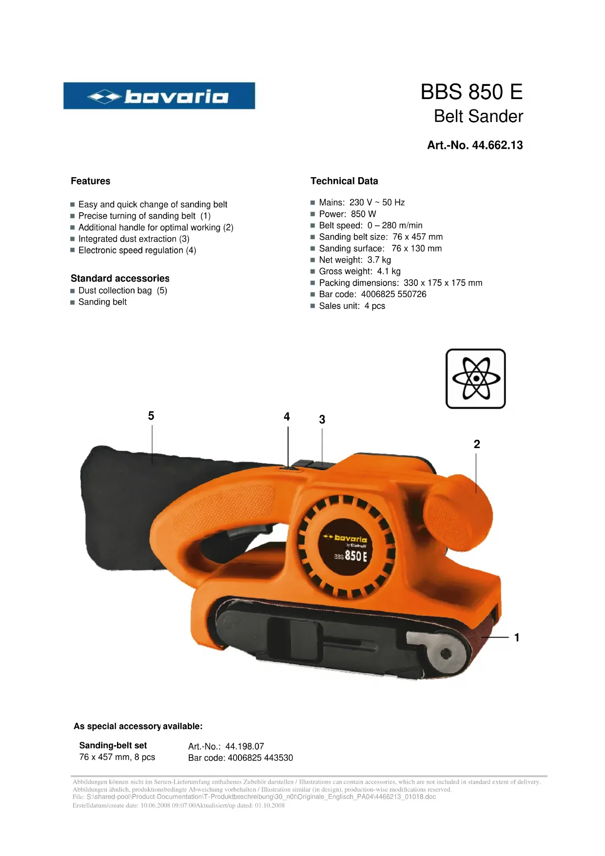 BBS 850 E - Ponceuse Bavaria - Notice d'utilisation et mode d'emploi gratuit