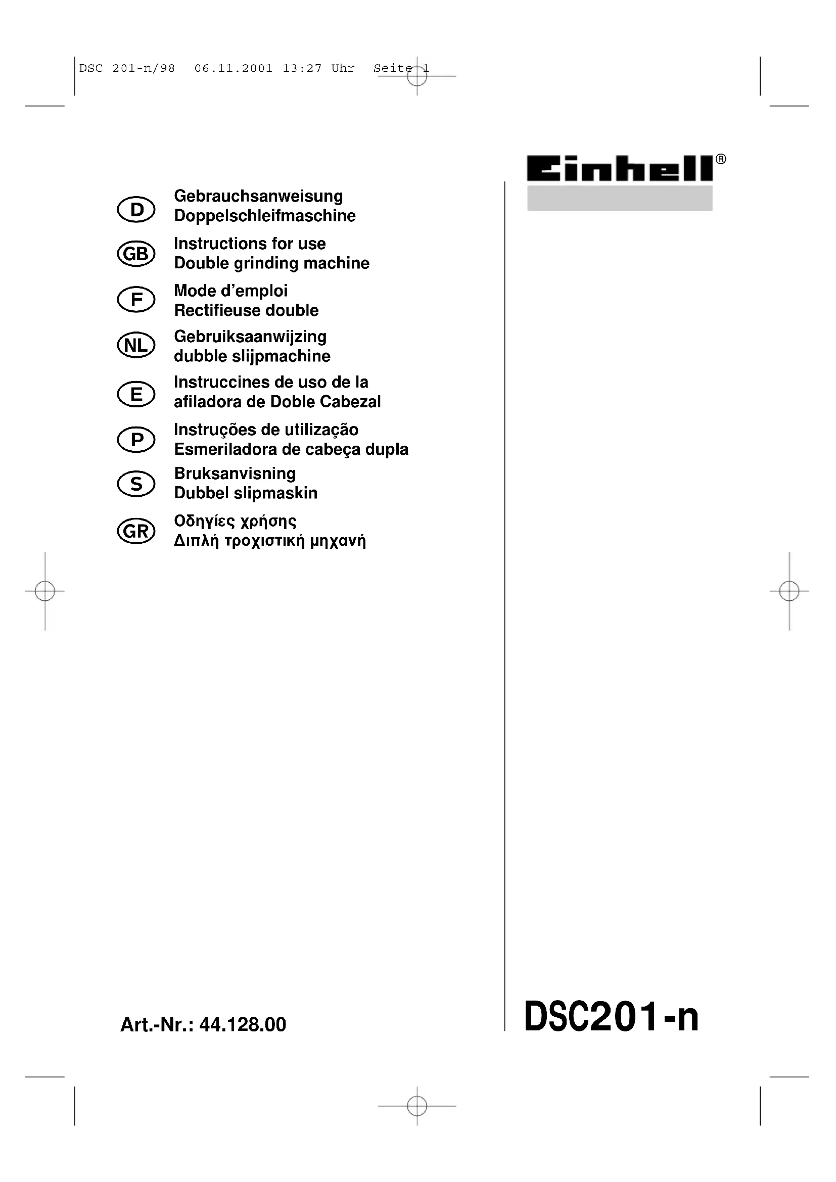 D Gebrauchsanweisung Doppelschleifmaschine