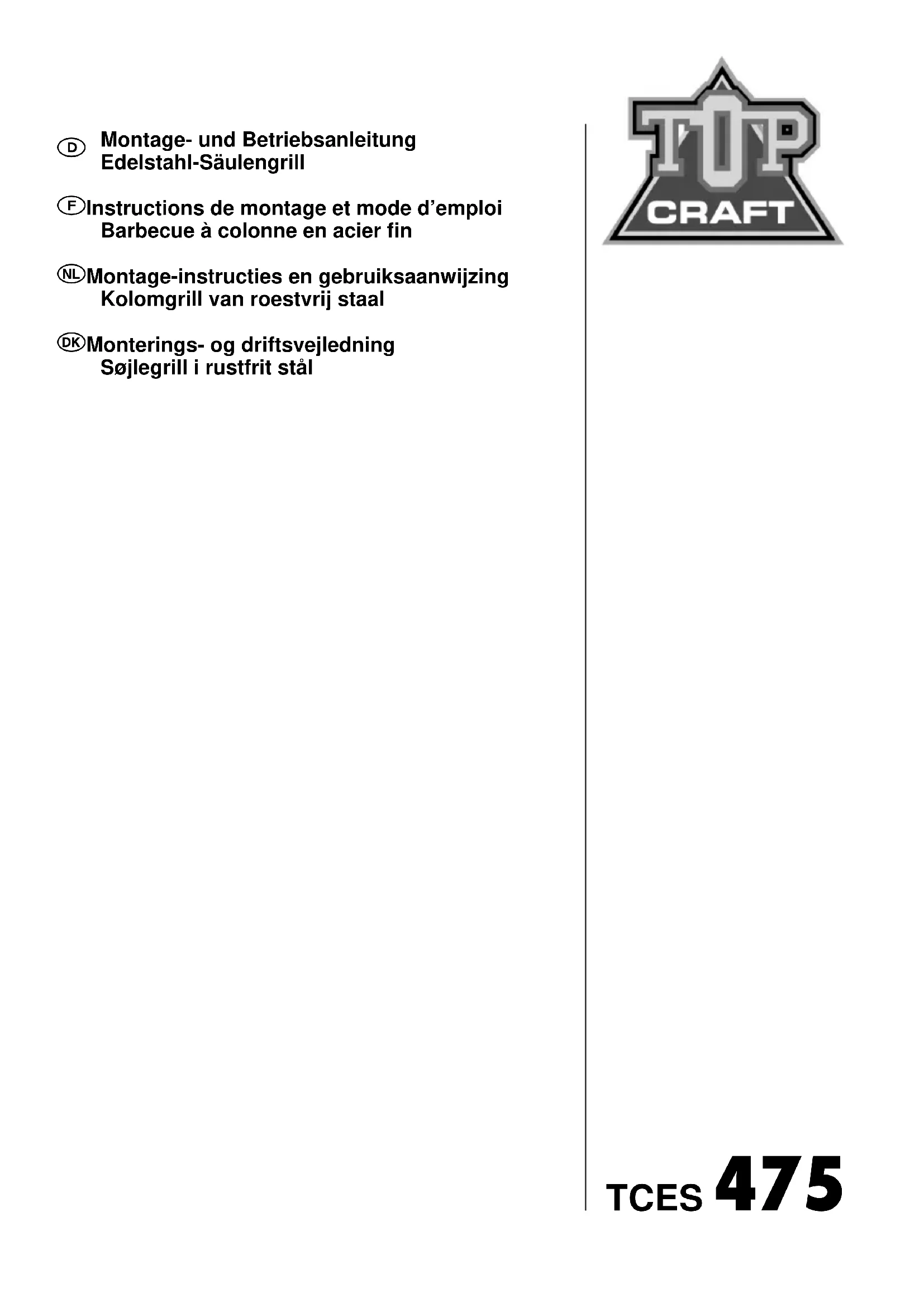 TCES 475 - Barbecue TOP CRAFT - Notice d'utilisation et mode d'emploi gratuit