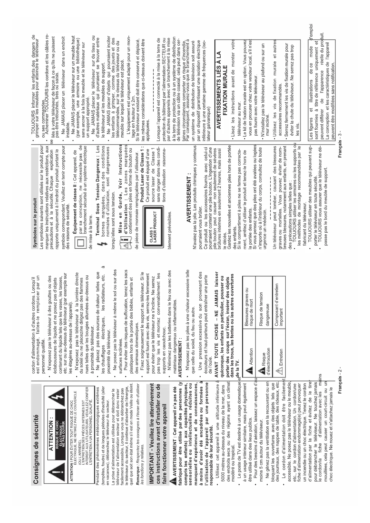 - 3URGXVH %DWHULH Français - 1 - Table des matières Consignes de sécurité p. 2