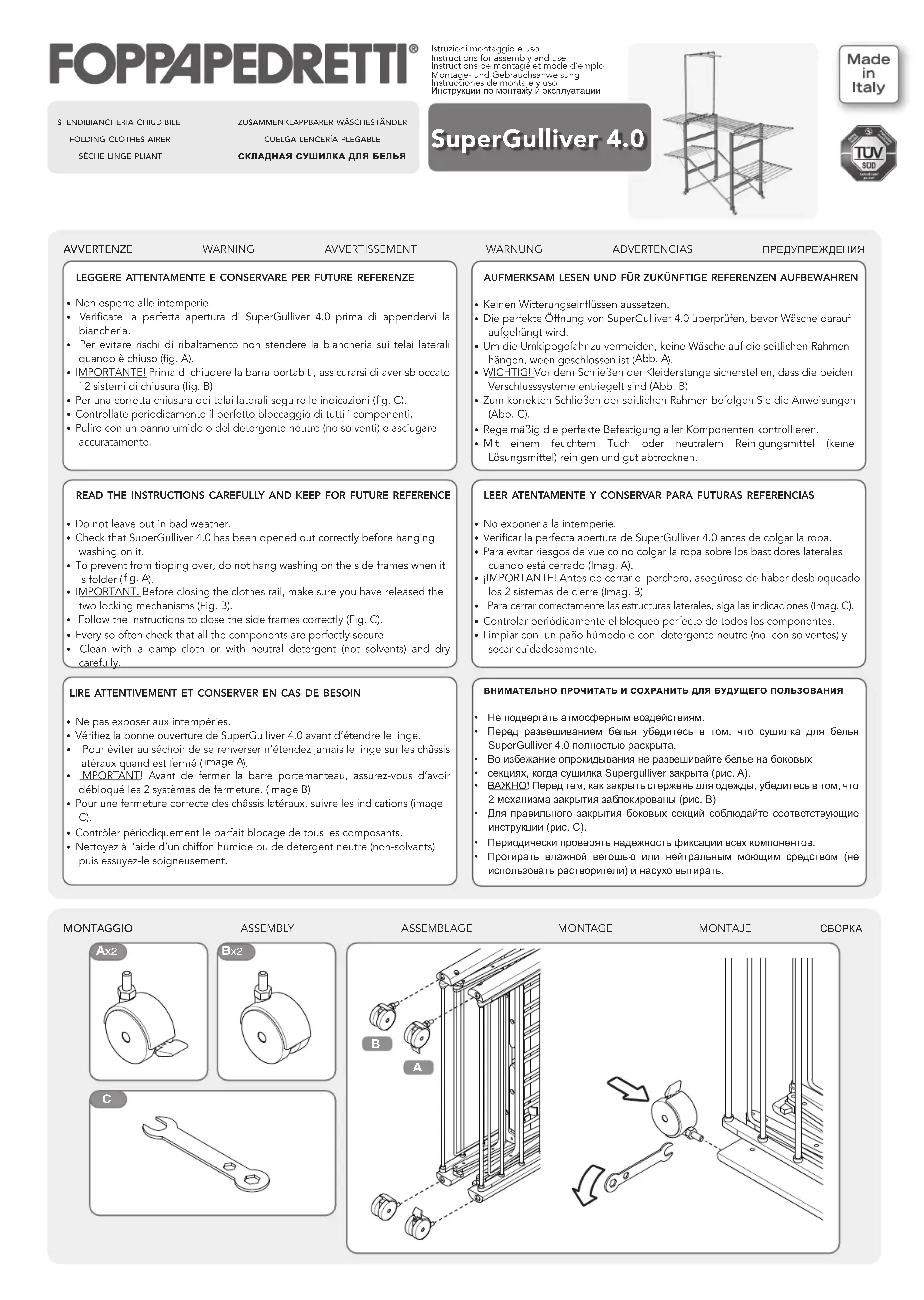 SuperGulliver 4.0 - Séchoir à linge Foppapedretti - Notice d'utilisation et mode d'emploi gratuit