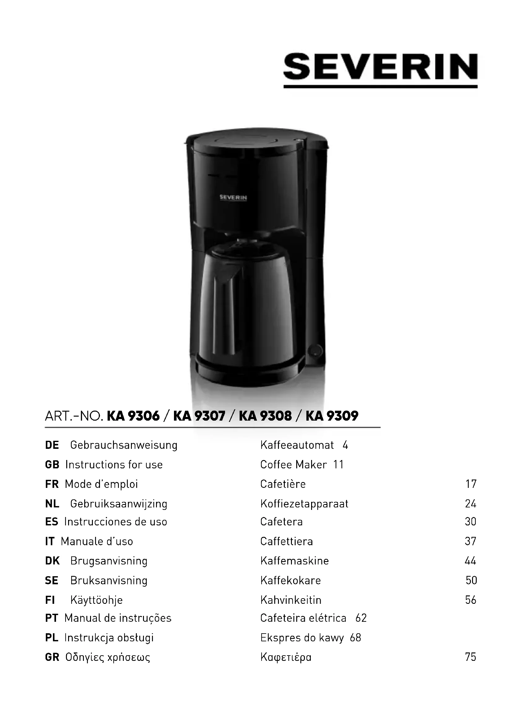 Retrouvez gratuitement la notice de l'appareil KA 9309 SEVERIN au format PDF.
