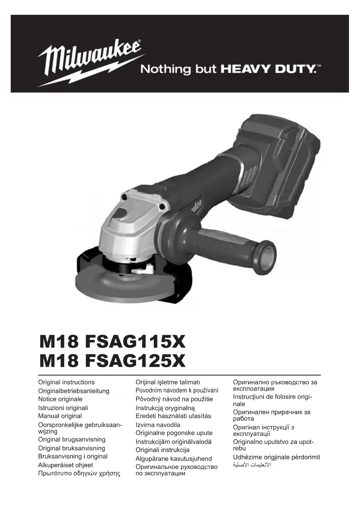 Retrouvez gratuitement la notice de l'appareil M18 FSAG115X MILWAUKEE au format PDF.