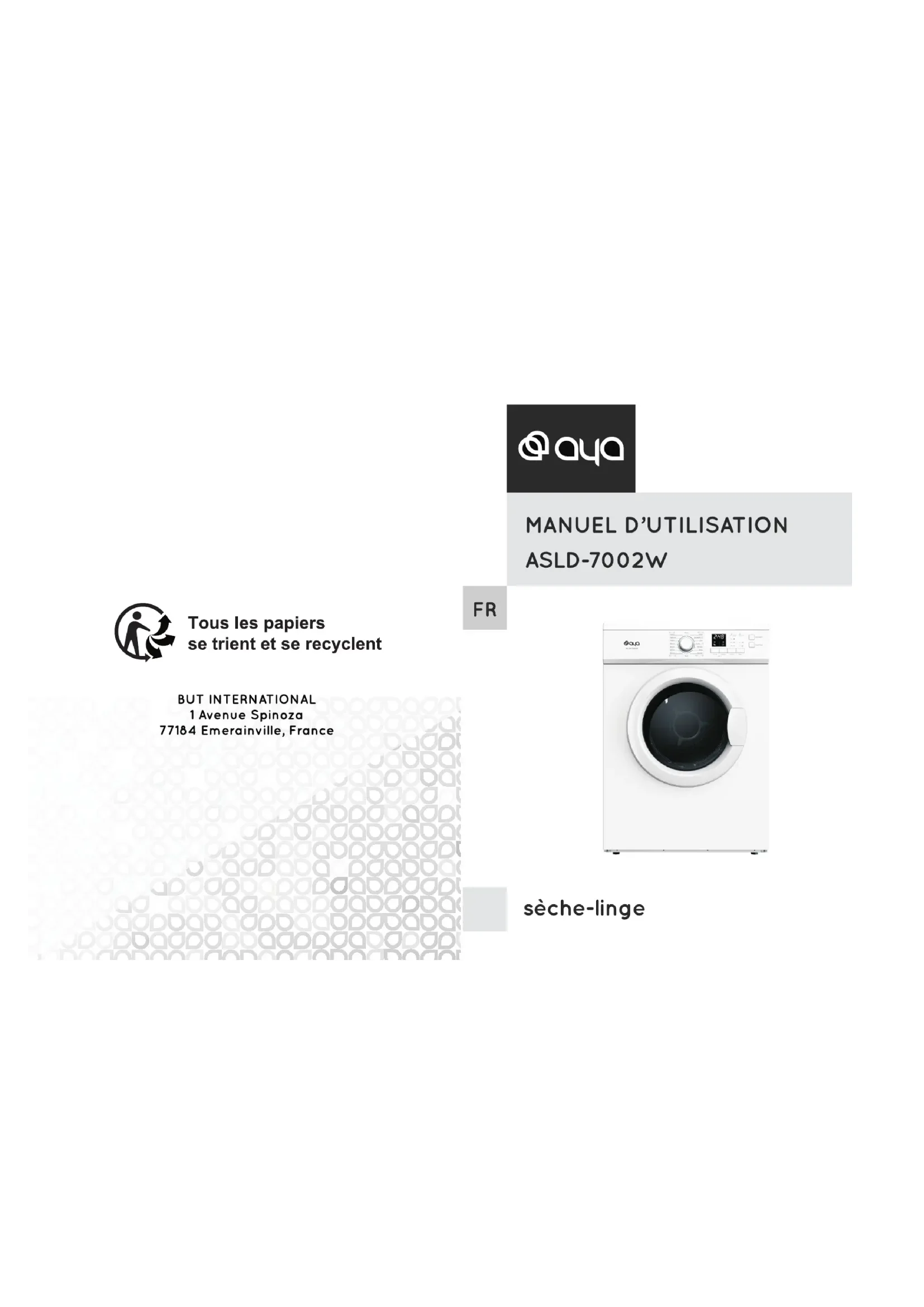 ASLD7002W - Seche linge AYA - Notice d'utilisation et mode d'emploi gratuit