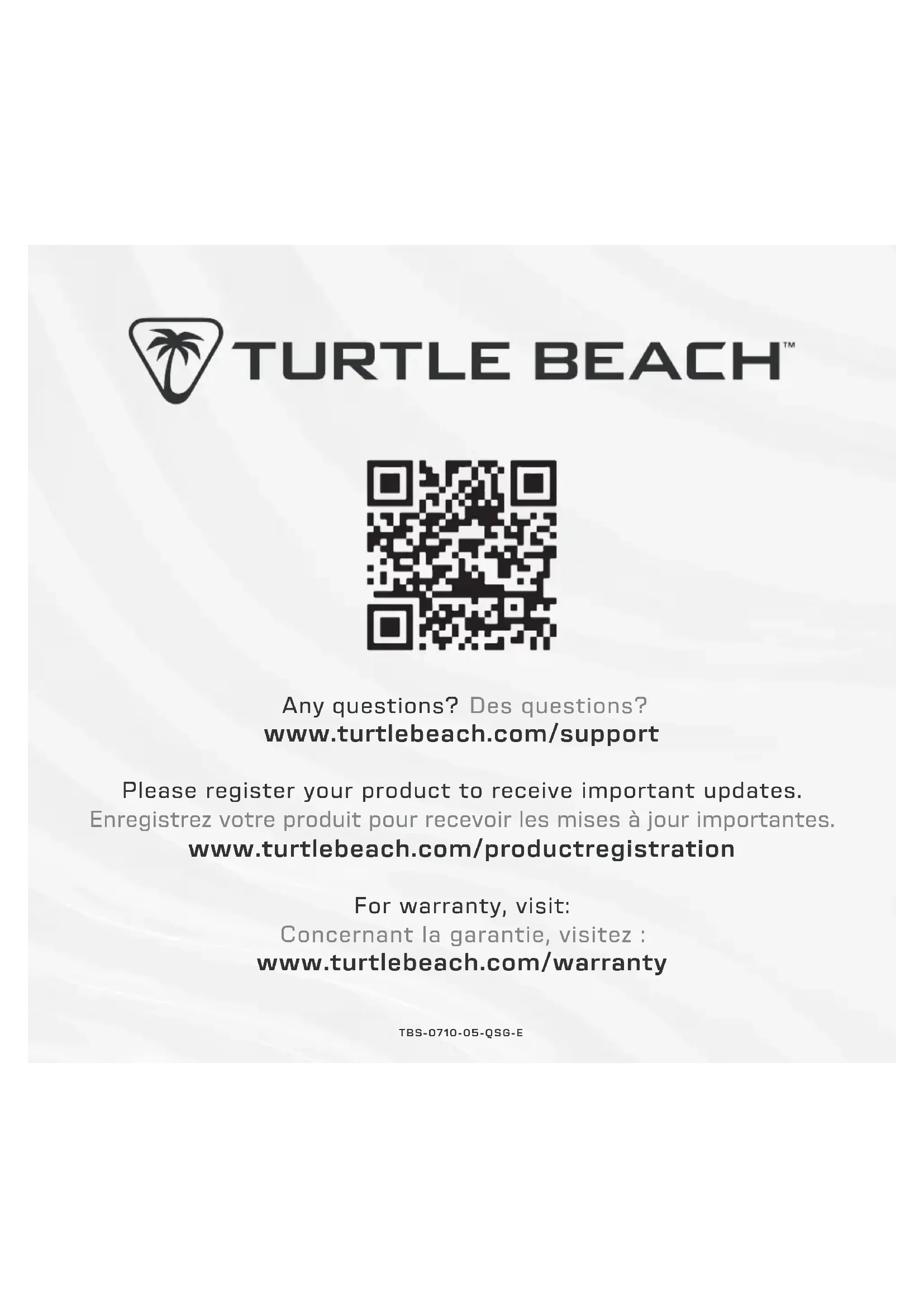 Enregistrez votre produit pour recevoir les mises à jour importantes. www.turtlebeach.com/productregistration