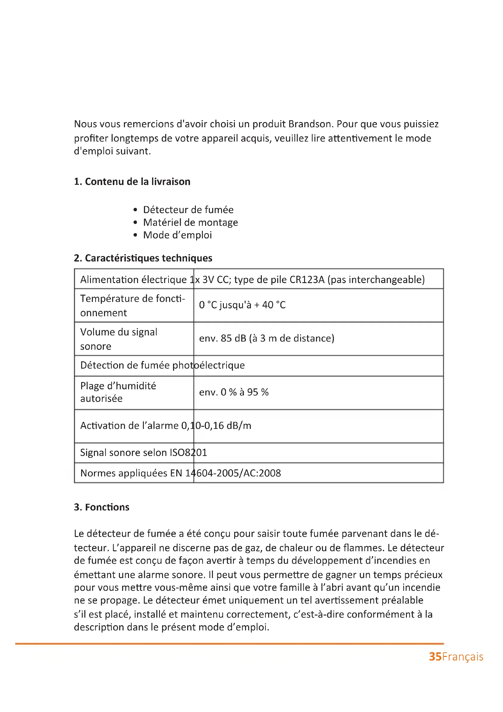 304973 - Détecteur de fumée Brandson - Notice d'utilisation et mode d'emploi gratuit