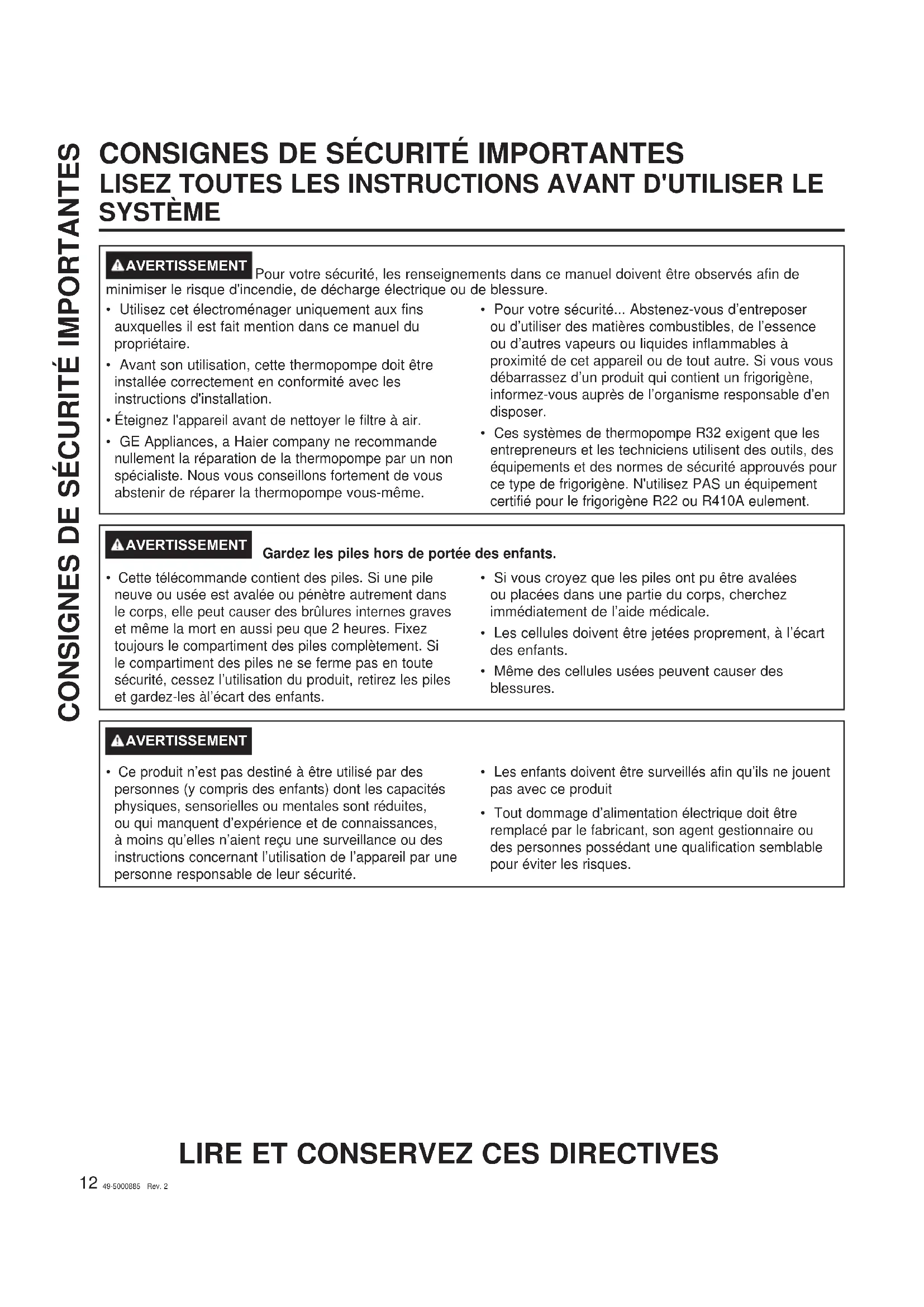 CONSIGNES DE SÉCURITÉ IMPORTANTES LISEZ TOUTES LES INSTRUCTIONS AVANT D'UTILISER LE SYSTÈME