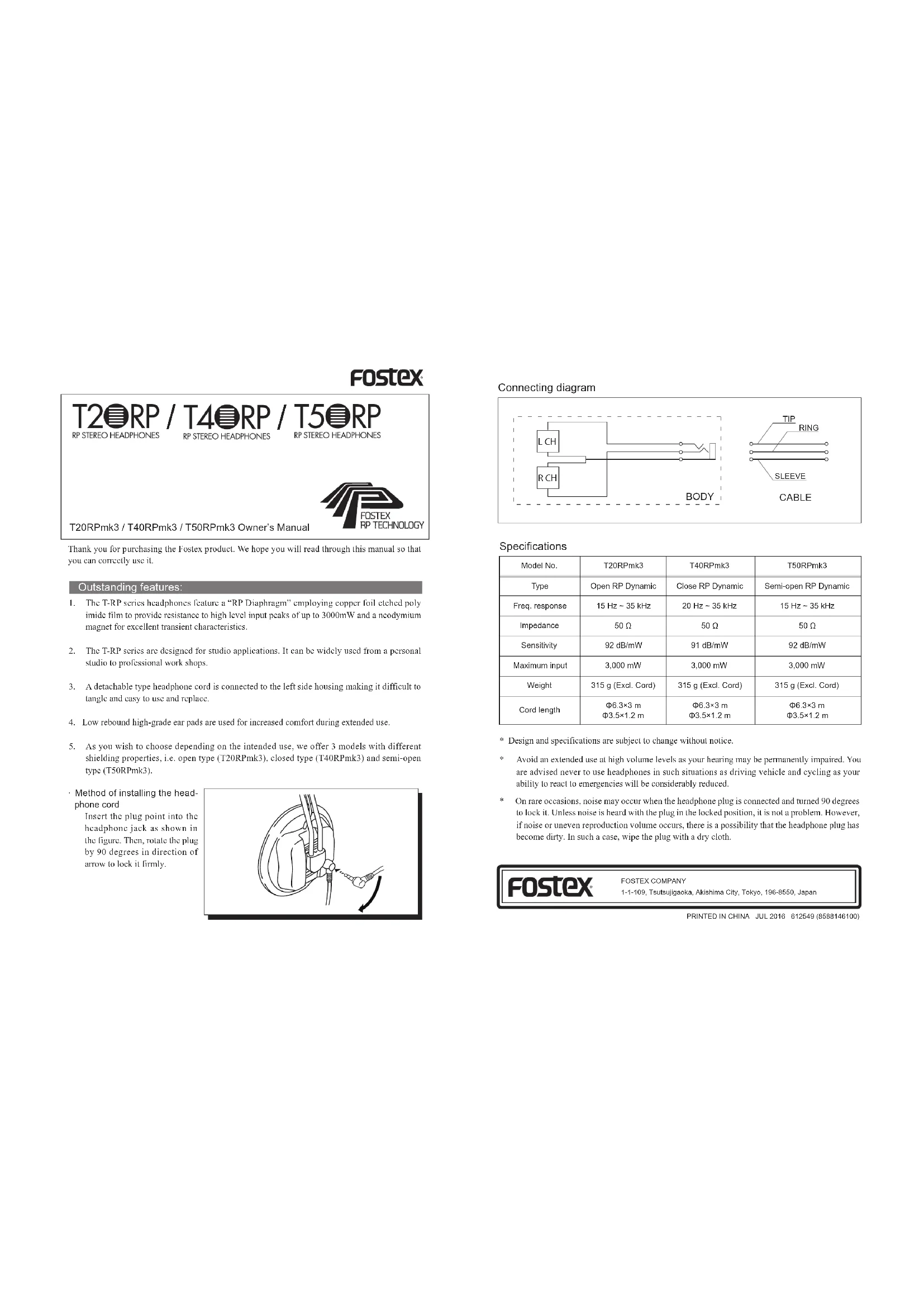 T20RPmk3 - Ecouteur FOSTEX - Notice d'utilisation et mode d'emploi gratuit