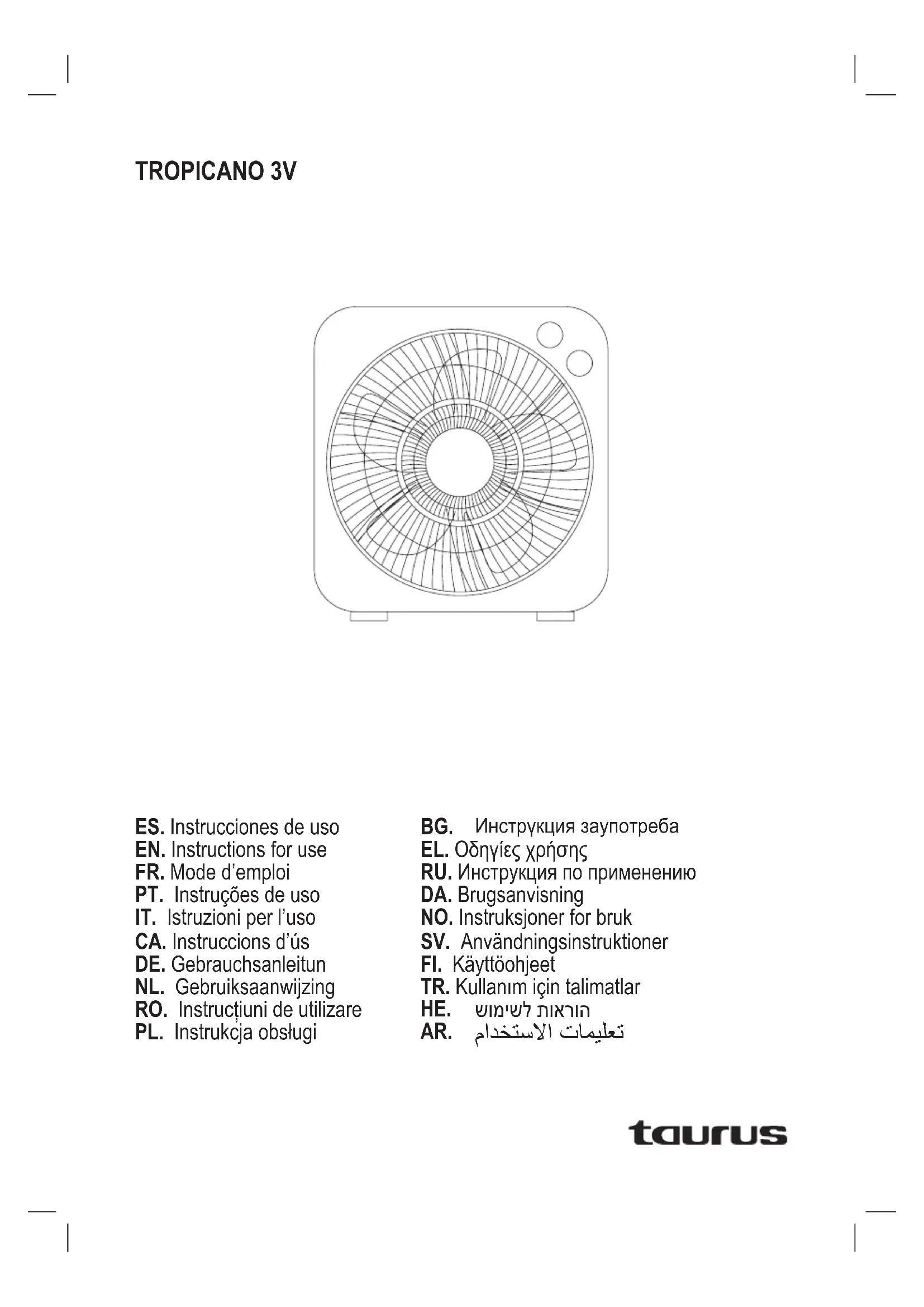 Retrouvez gratuitement la notice de l'appareil Tropicano 3V TAURUS au format PDF.