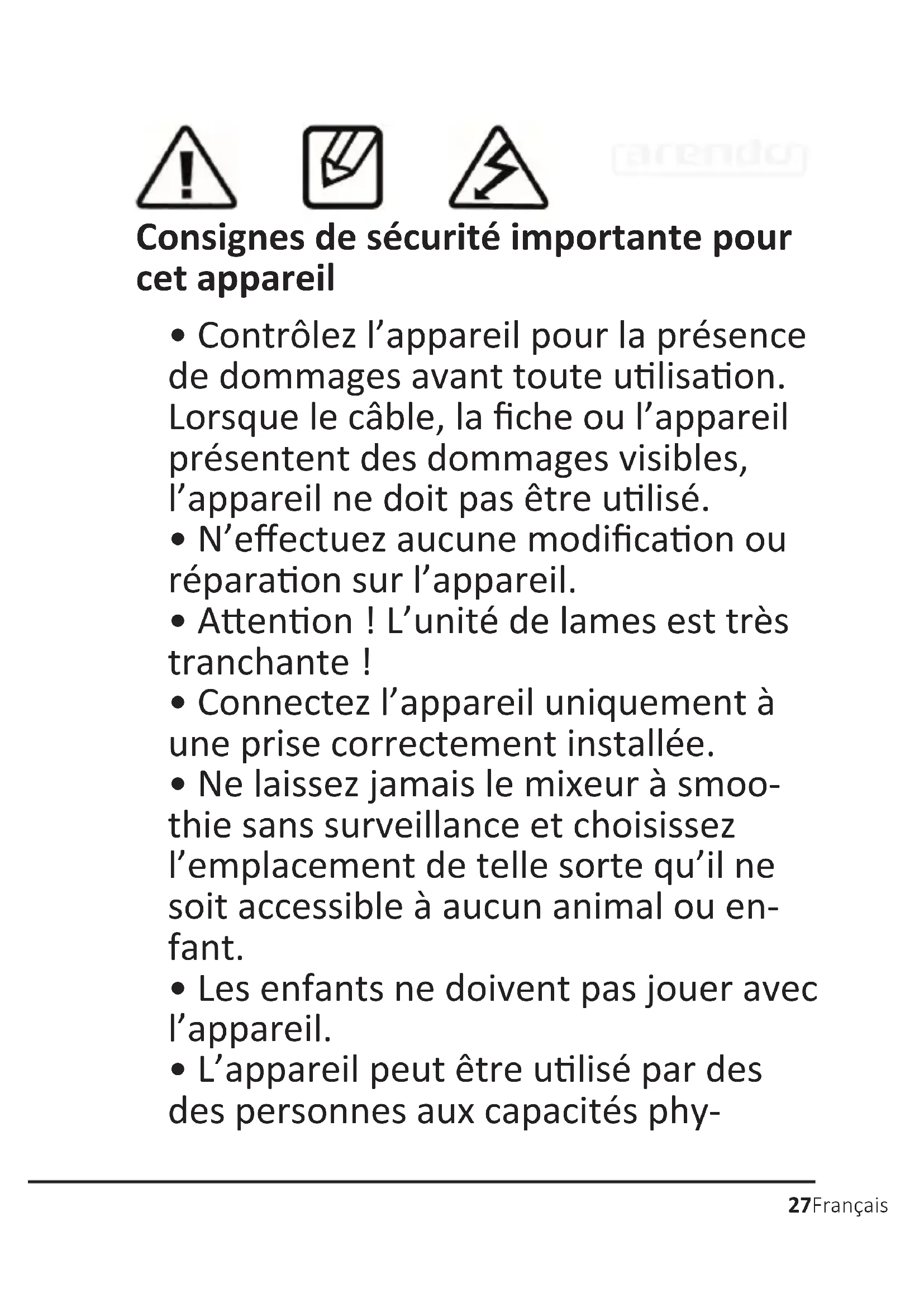 Nous vous remercions d'avoir choisi un produit Arendo. Pour que vous puissiez profiter longtemps de l'appareil acquis, veuillez lire attentivement le mode d'emploi suivant.