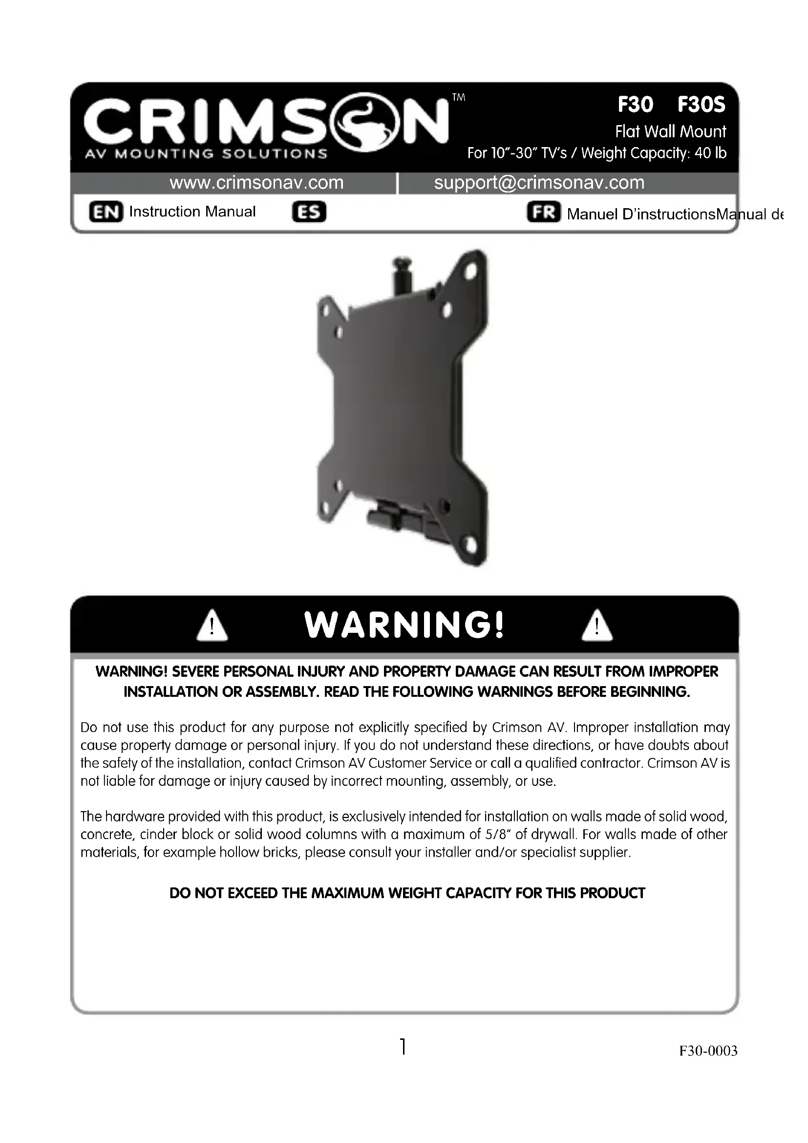 F30 - Support mural Crimson - Notice d'utilisation et mode d'emploi gratuit
