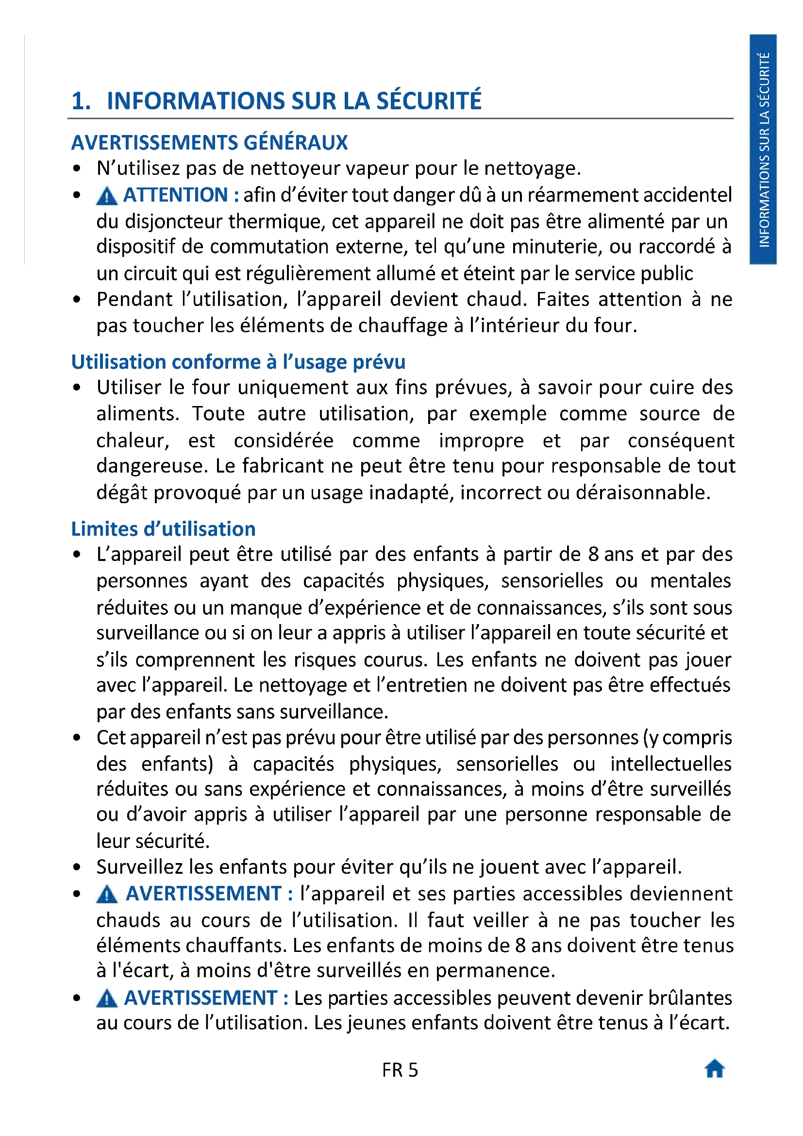 - AVERTISSEMENT : Les parties accessibles peuvent devenir brûlantes au cours de l’utilisation. Les jeunes enfants doivent être tenus à l’écart.FR 6