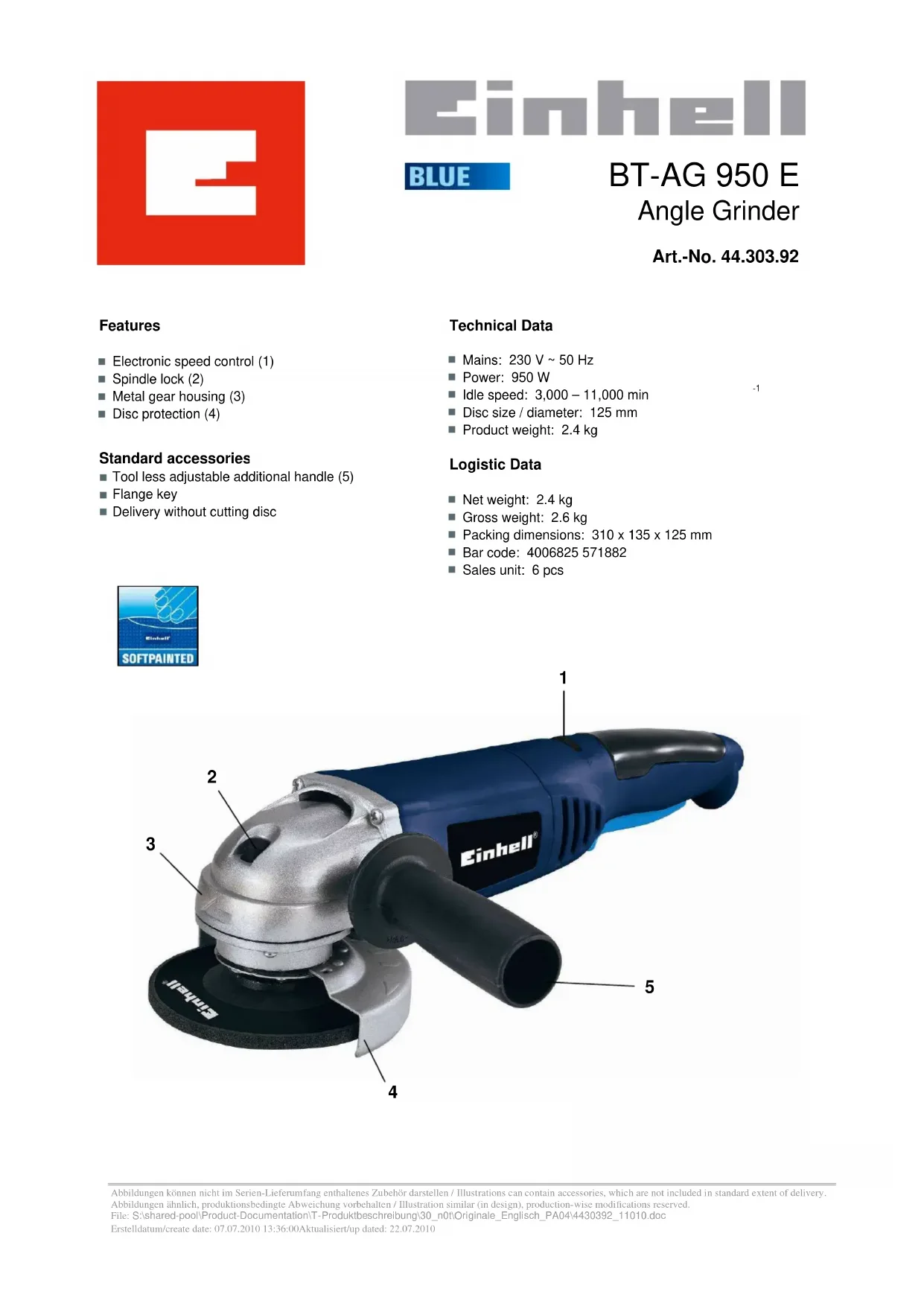 Retrouvez gratuitement la notice de l'appareil BTAG 950 E EINHELL au format PDF.