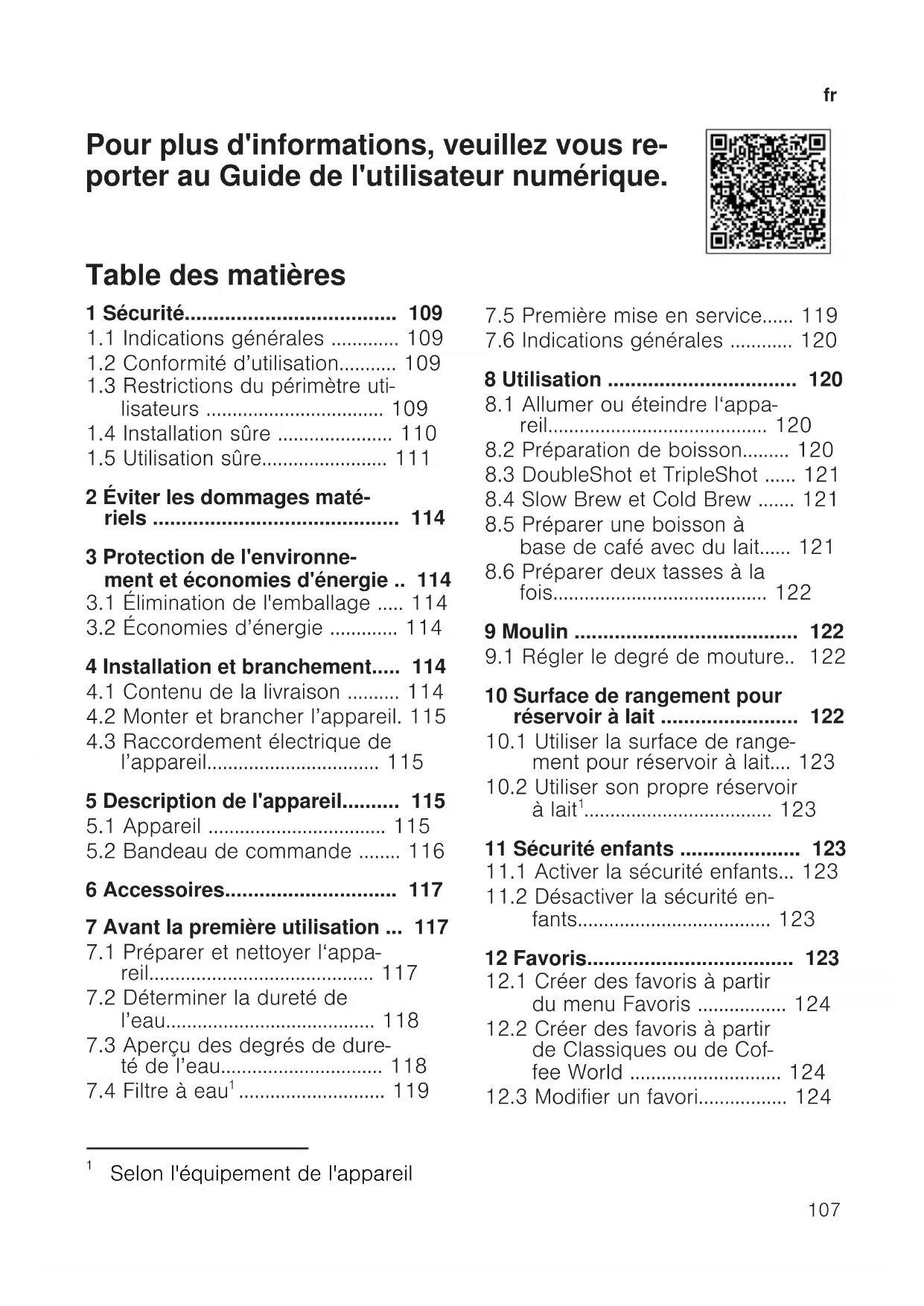 Pour plus d'informations, veuillez vous re- porter au Guide de l'utilisateur numérique. Table des matières 1 Sécurité.....................................109