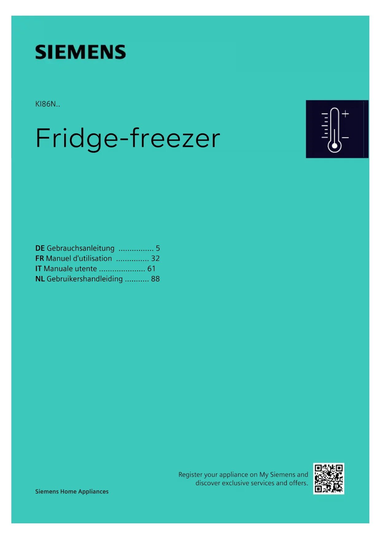 Retrouvez gratuitement la notice de l'appareil KI86NSDC0 SIEMENS au format PDF.