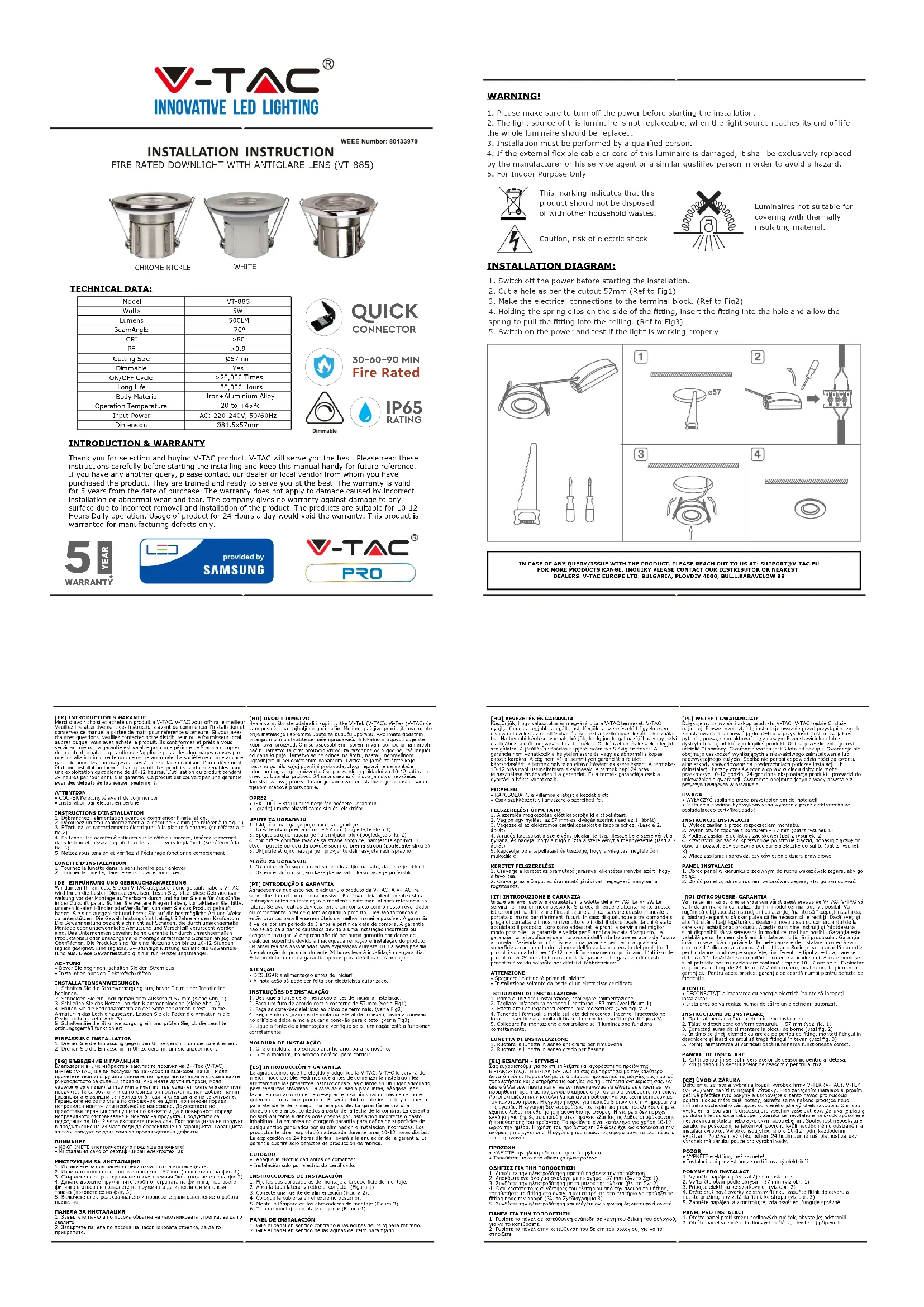 VT885 - Lampe V-TAC - Notice d'utilisation et mode d'emploi gratuit