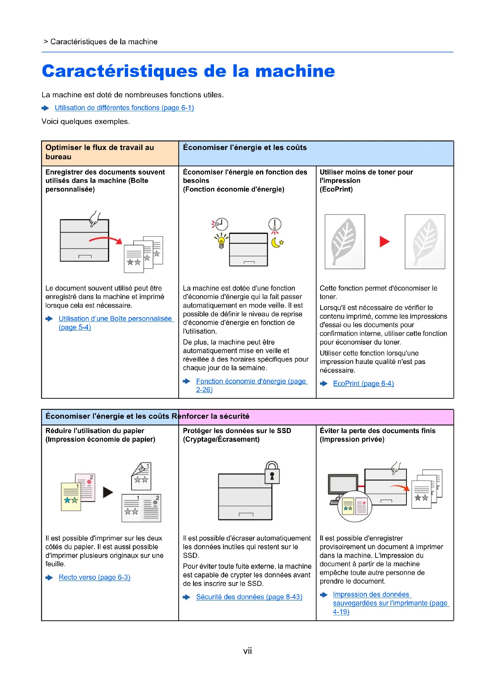 8-9 Magasin 1 2-2 Magasins 2 à 5 2-5 Maintenance ordinaire 10-2 MÀJ FW manuelle 8-45 Manuels fournis avec la machine