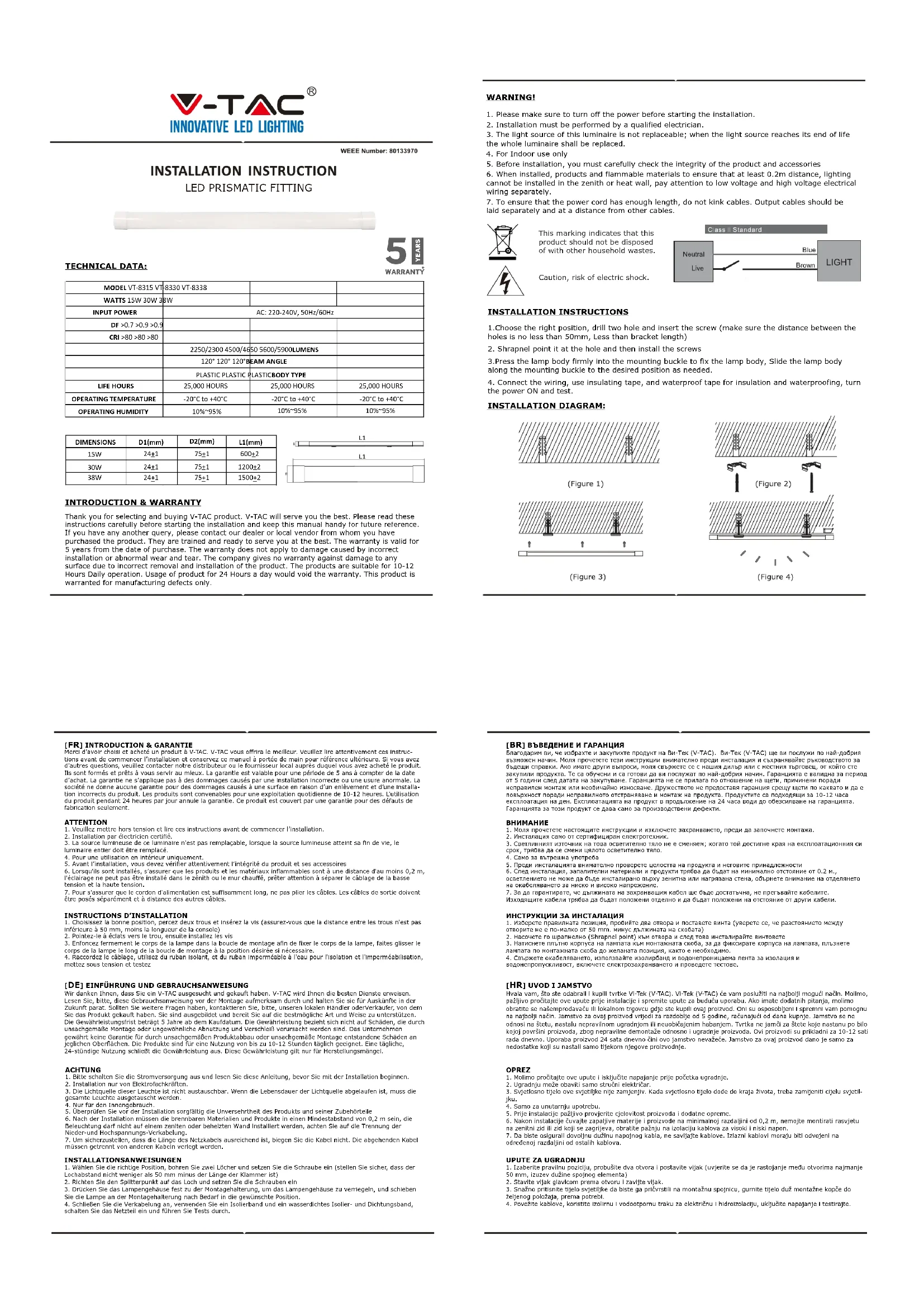 Retrouvez gratuitement la notice de l'appareil VT8315 V-TAC au format PDF.
