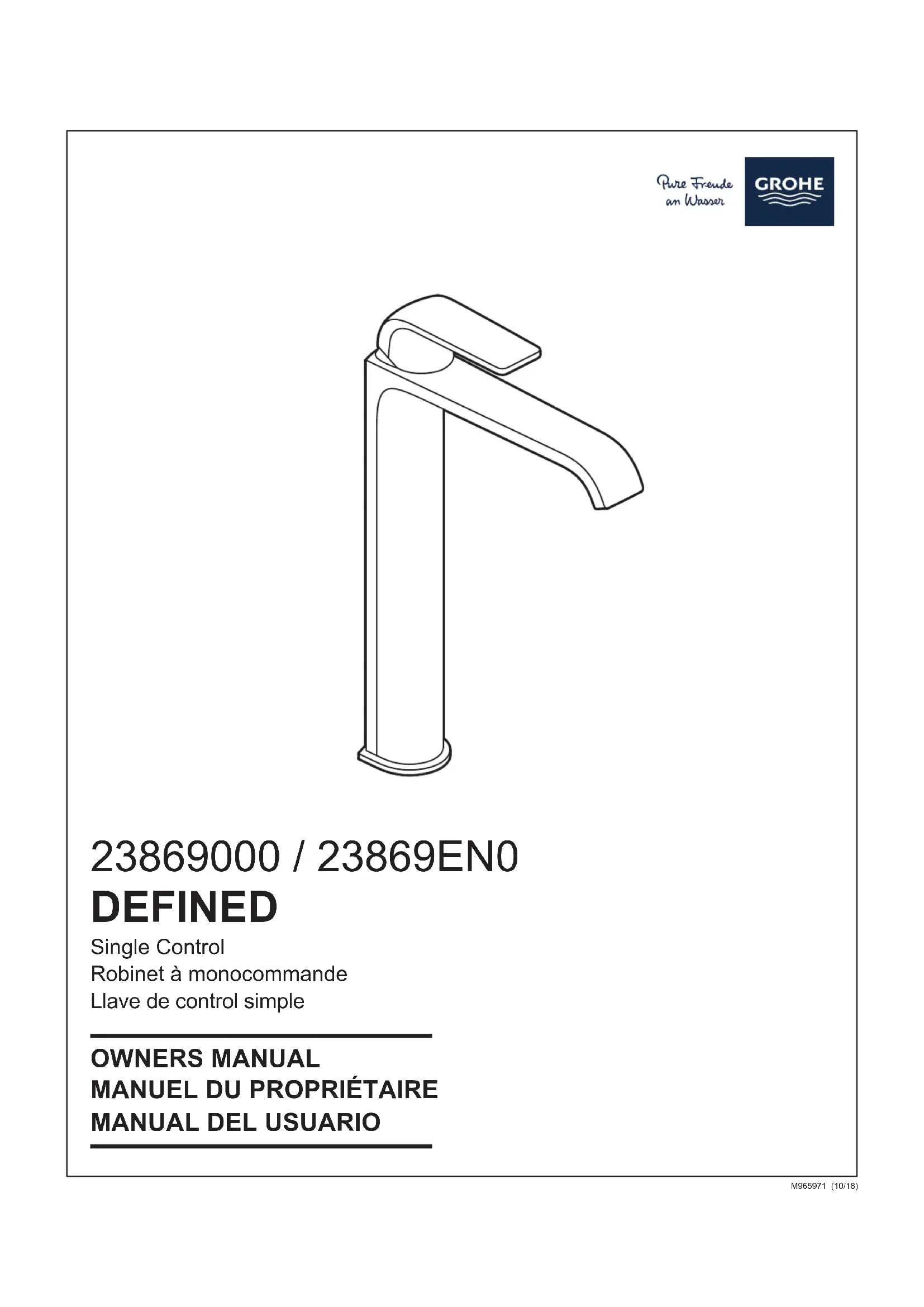 Retrouvez gratuitement la notice de l'appareil Defined 23869EN0 GROHE au format PDF.