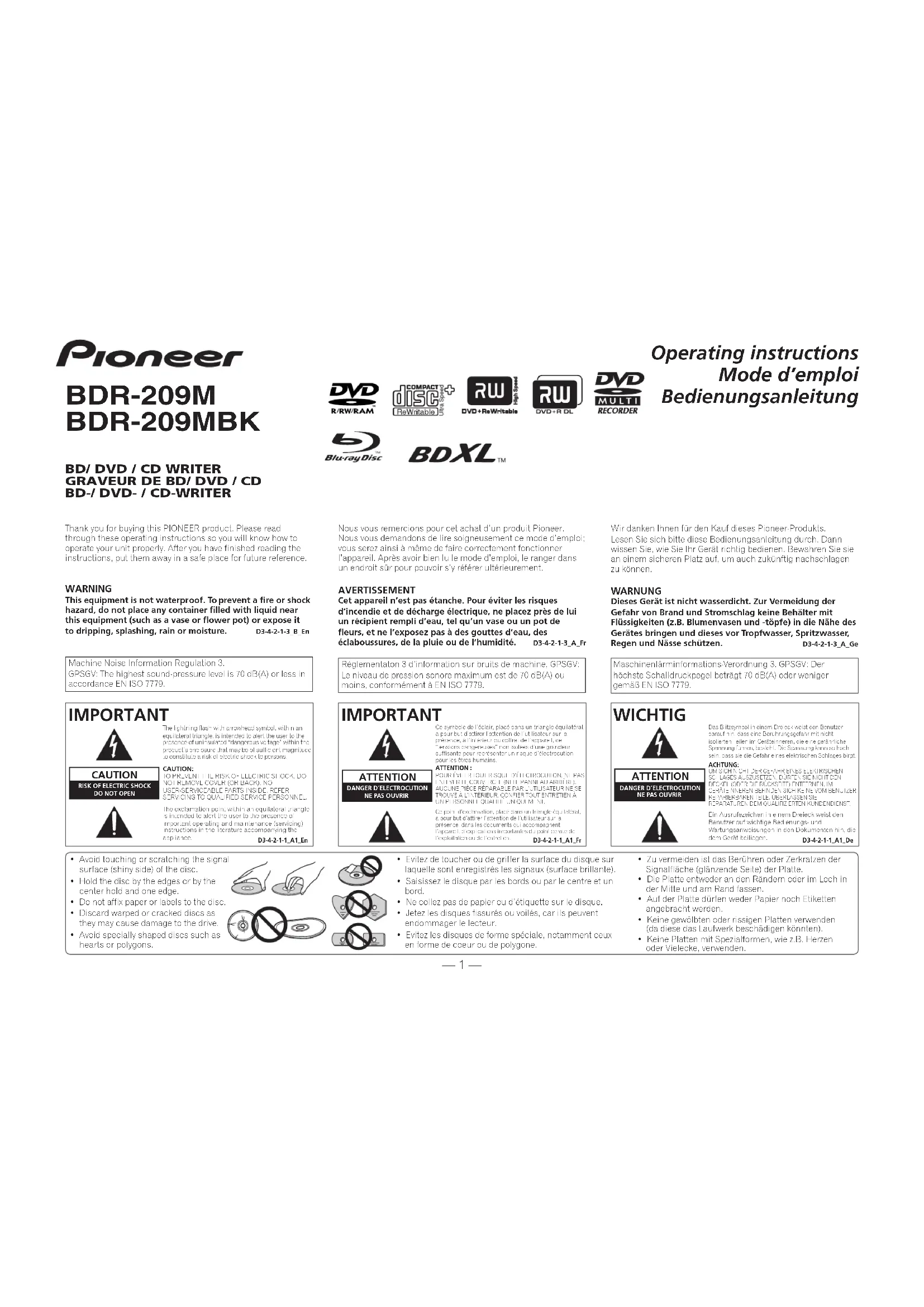 Retrouvez gratuitement la notice de l'appareil BDR209MBK PIONEER au format PDF.