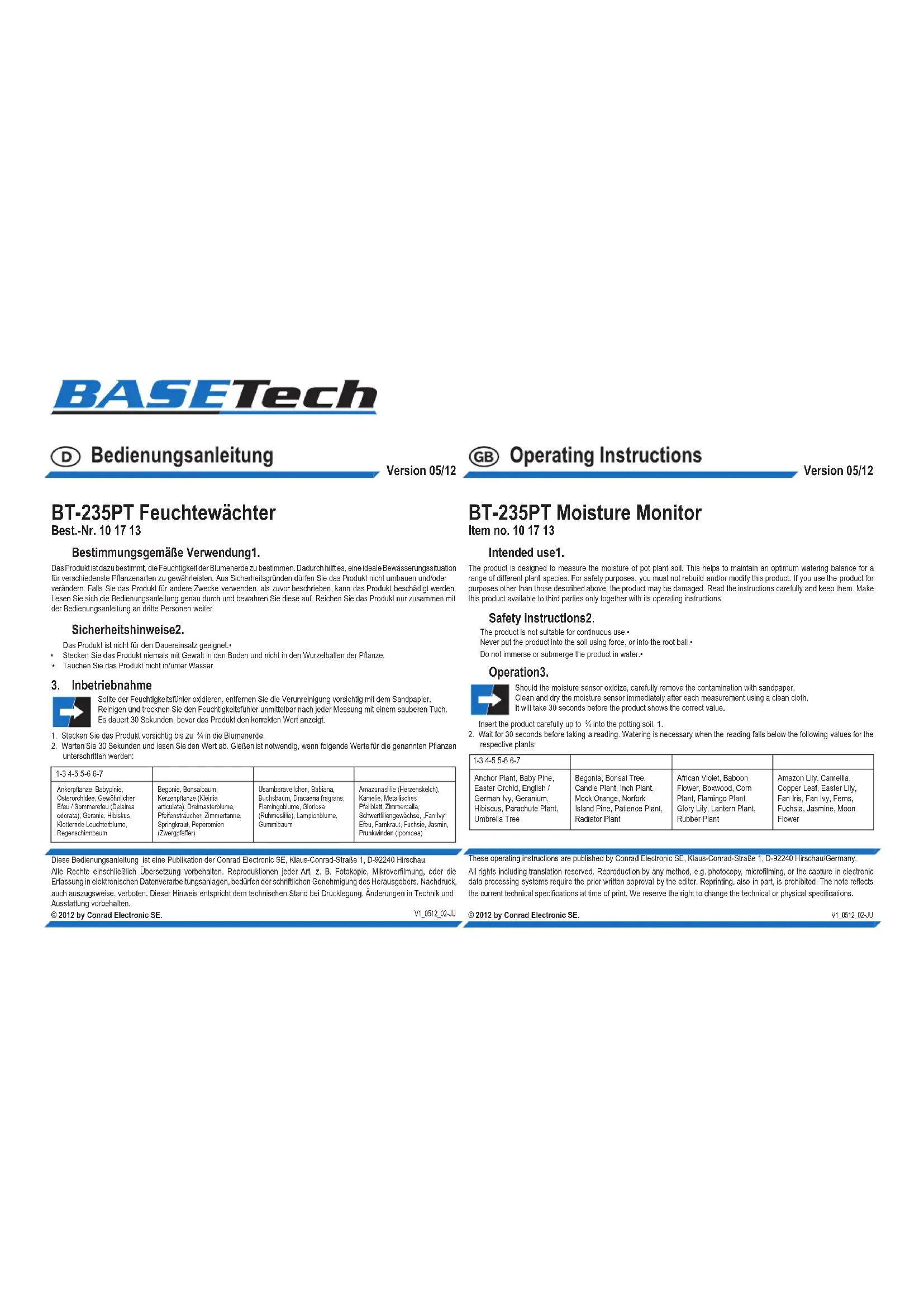 BT235PT - équipements de mesure BASETECH - Notice d'utilisation et mode d'emploi gratuit