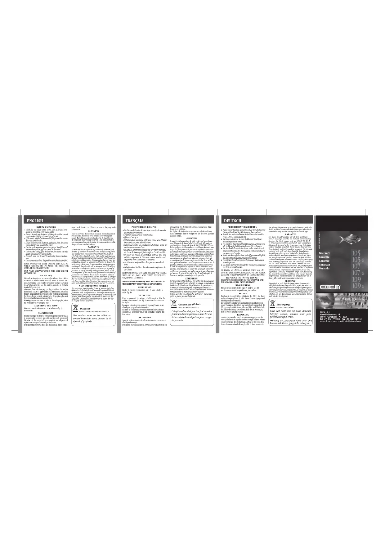 Retrouvez gratuitement la notice de l'appareil 105 EDEN au format PDF.