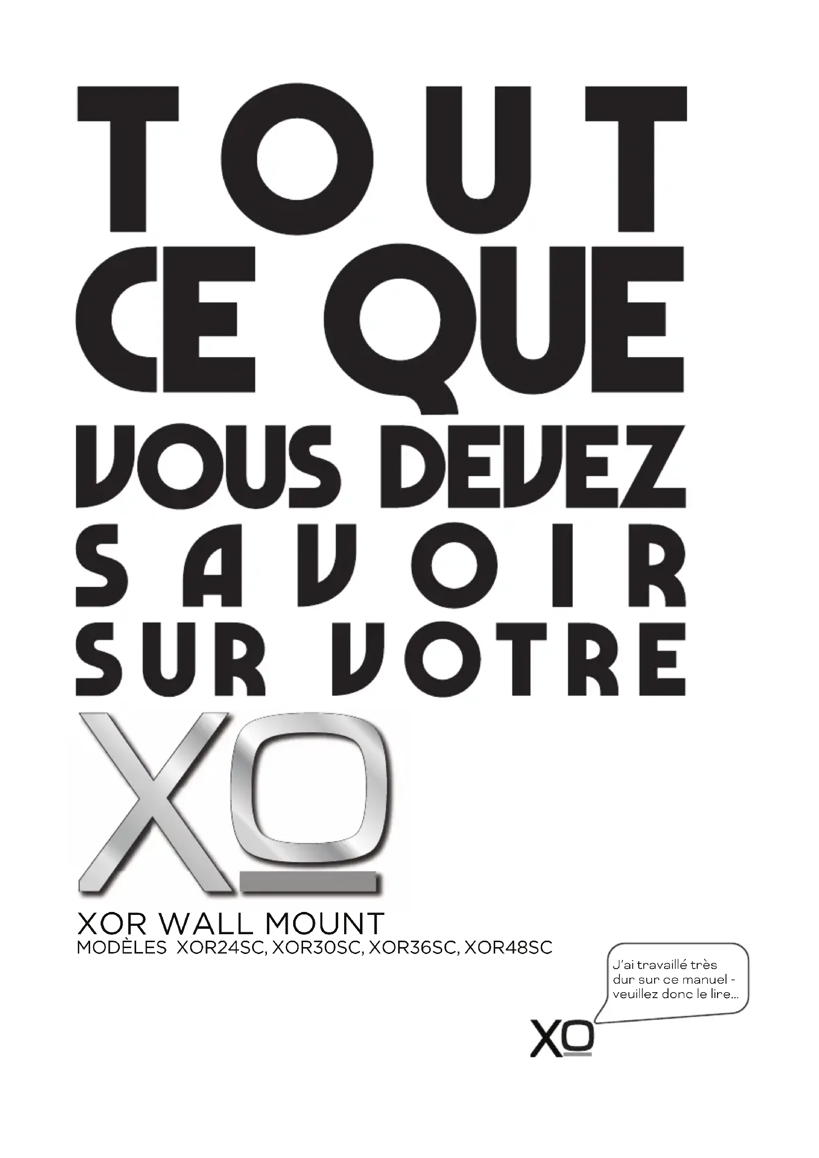 Lorsque vous achetez un appareil XO vous pouvez être sûr que vous avez choisi un produit de haute qualité, innovant et élégant d'une entreprise qui se soucie de vous ! Si vous avez besoin d'un service ou si vous avez des questions, il existe 2 façons de contacter nos experts en ventilation ; En ligne @ https://xoappliance.com/priority-service-for-your-xo- -product/Ou par téléphone 973-403-8900 FÉLICITATIONS pour l'achat de votre XO. Avant de continuer, prenez un instant pour enregistrer votre XO à l’adresse : www.xoappliance.com/register-your-product/
