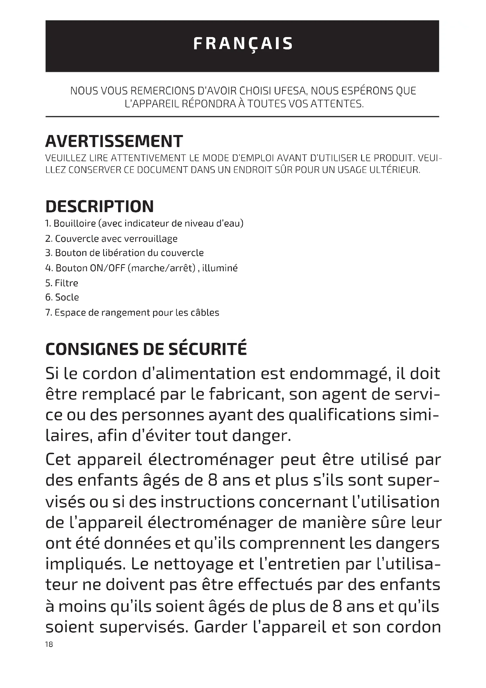 Canyon - Bouilloire UFESA - Notice d'utilisation et mode d'emploi gratuit