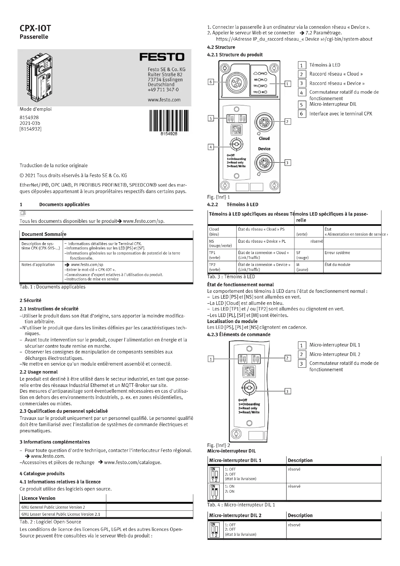 Retrouvez gratuitement la notice de l'appareil CPXIOT Festo au format PDF.