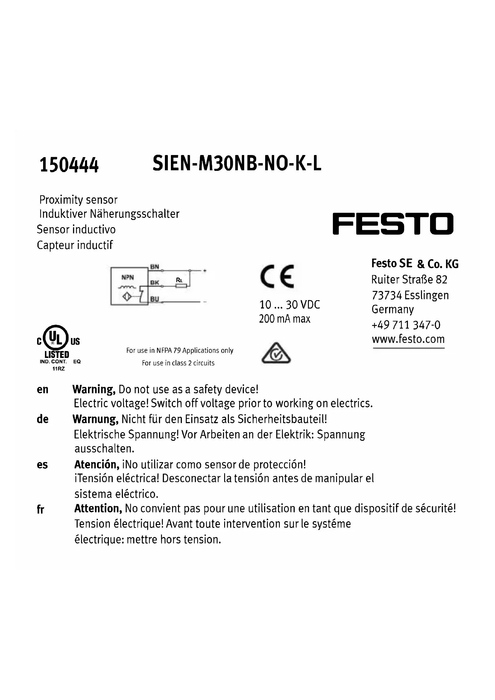 SIENM30NBNOKL - Non catégorisé Festo - Notice d'utilisation et mode d'emploi gratuit