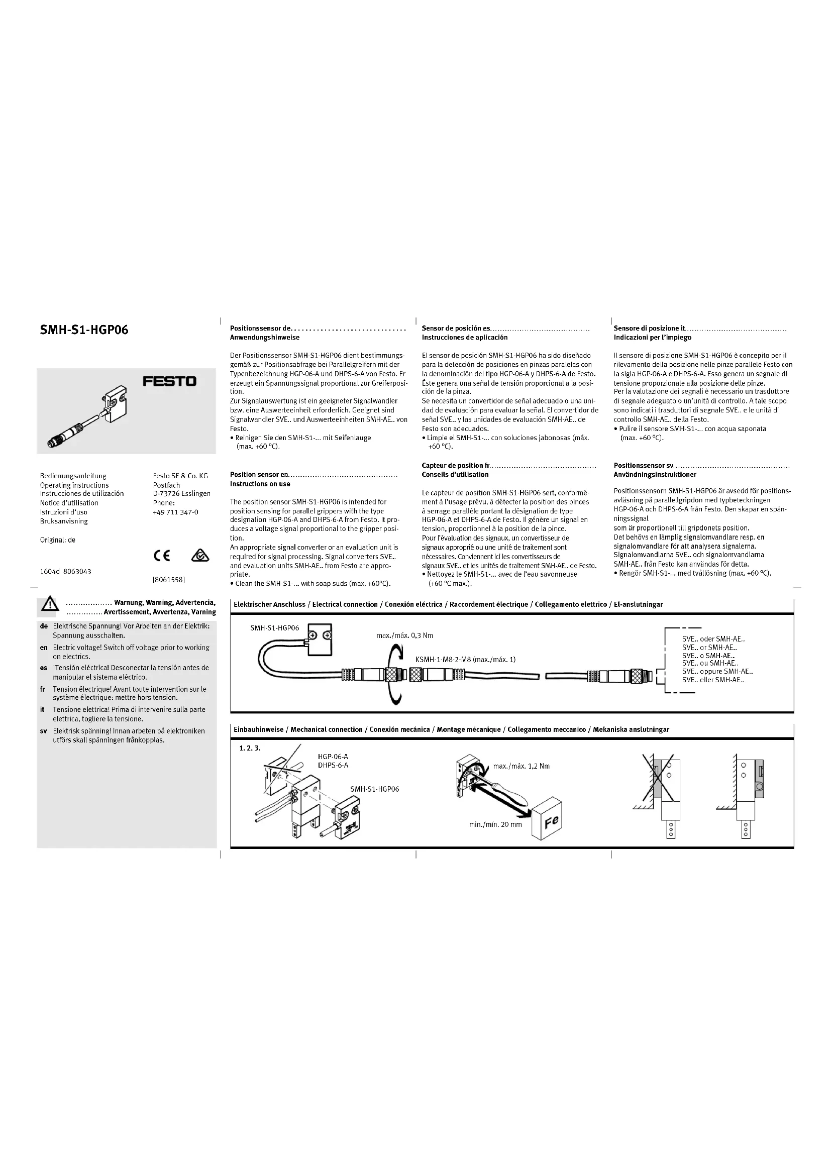SMHS1HGP06 - Capteur Festo - Notice d'utilisation et mode d'emploi gratuit